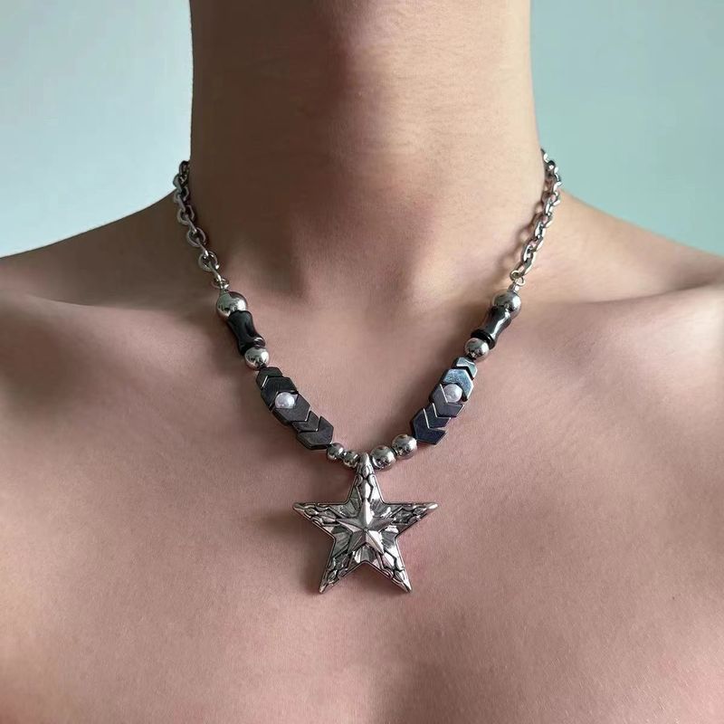 📚 红色爱心朋克项链男亚文化y2k配饰甜酷暗黑吊坠夸张设计锁骨链女