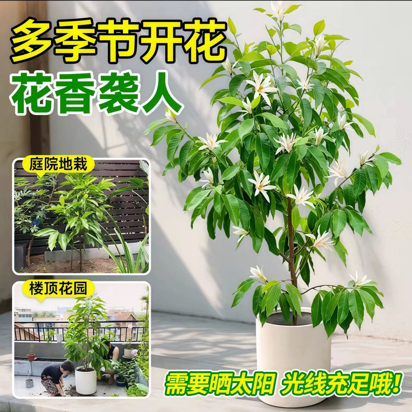 📚 盆栽白兰花树苗黄桷兰花别墅庭院室内大型花卉四季常青浓香风景树