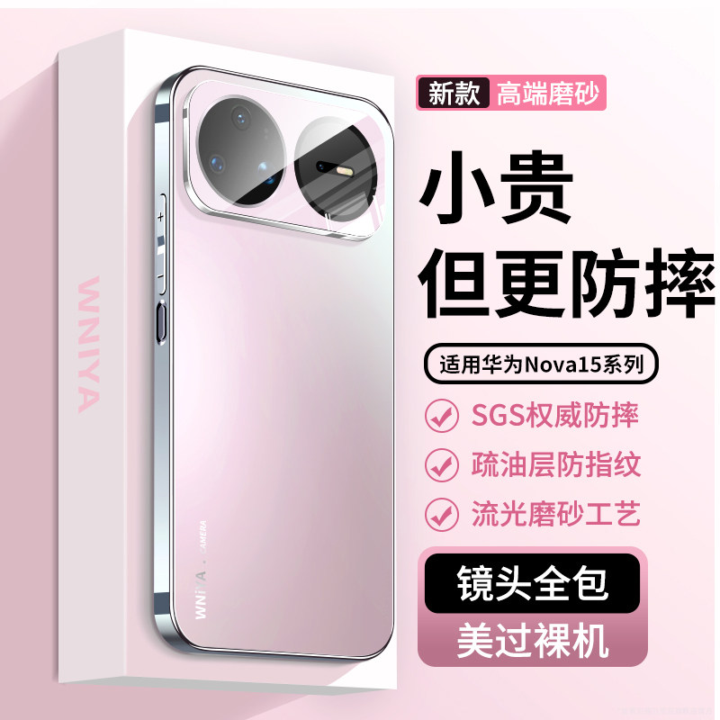 📚 适用华为Nova15pro手机壳Nova15新款女士磨砂玻璃nove15镜头全包防摔外壳ultra高级感后壳novo高端超薄保护套