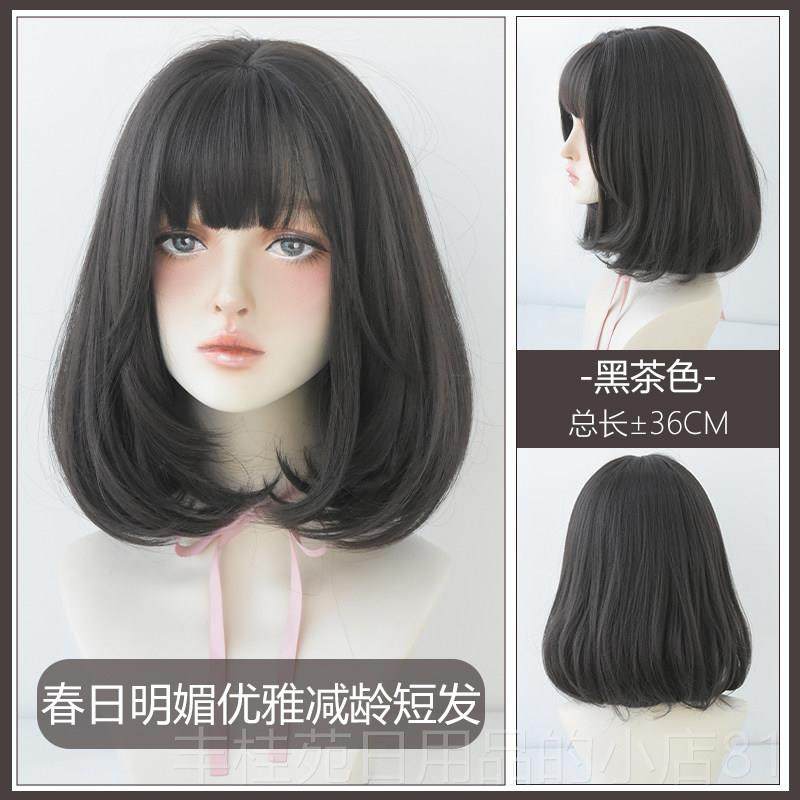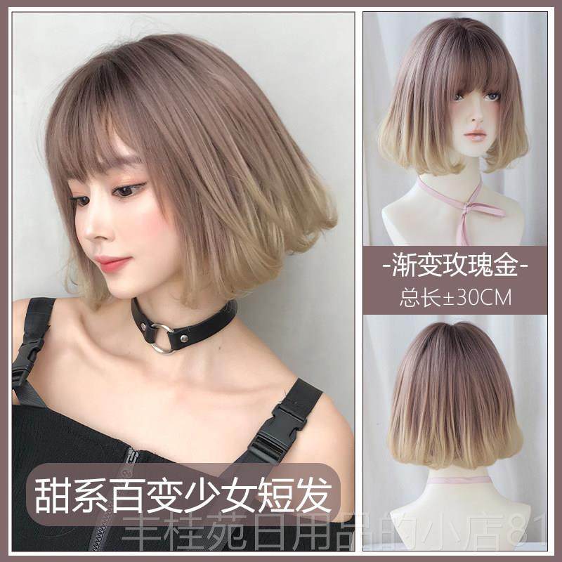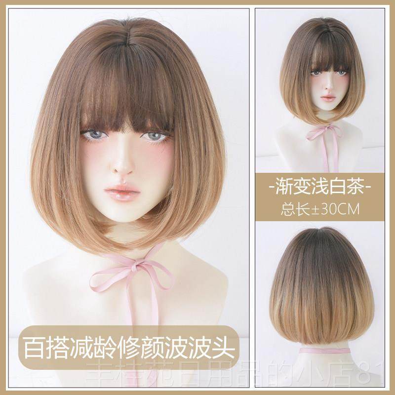 📚 正品假发短发学圆生头脸层雾霾蓝全头女套式网渐红自然短发内扣波