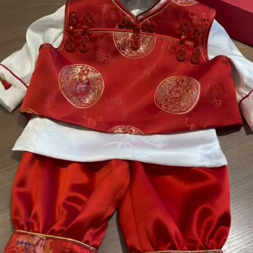 💥惊艳周岁礼服男宝!2025新款红色抓一周生日唐装冠衣,中国风夏日新中式,券后价仅268!💖