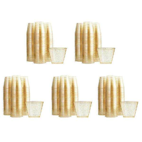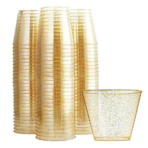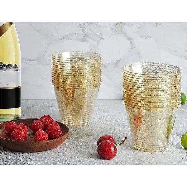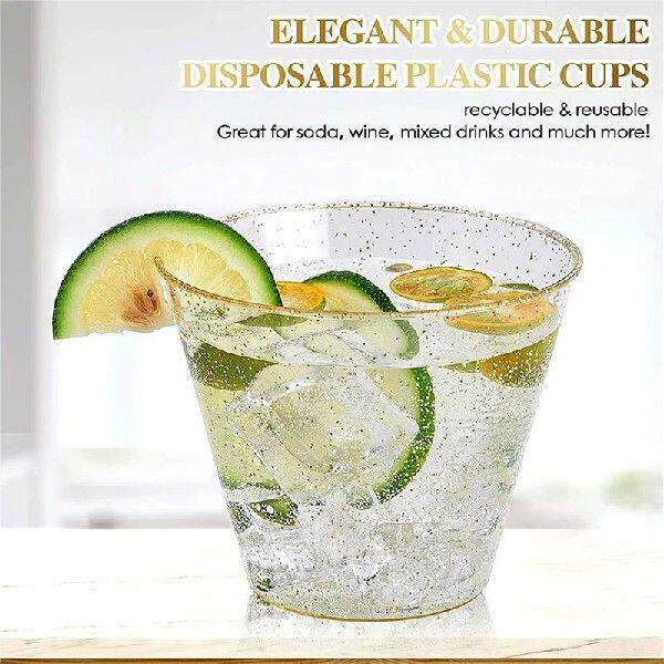 📚 【Berserkk】Gold Plastic Cups Clear Plastic Wine Glasses,