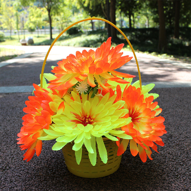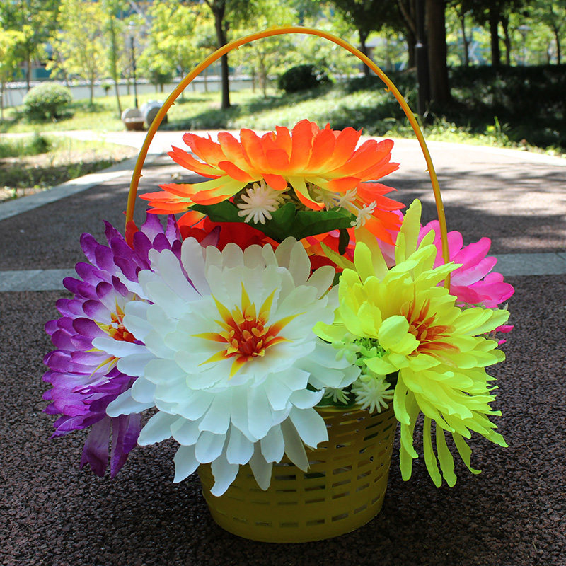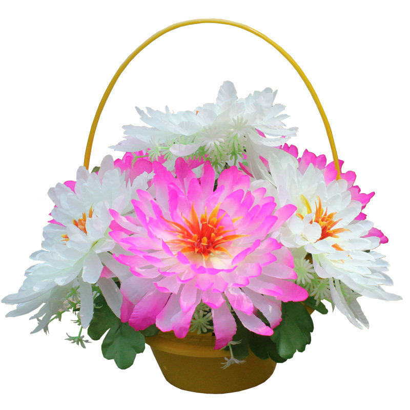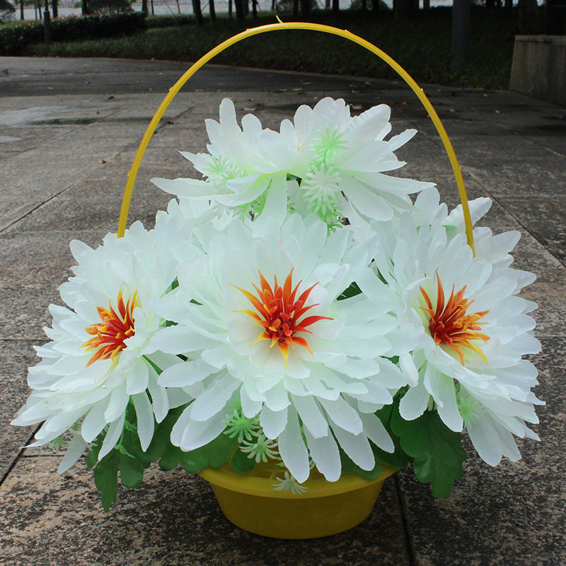 📚 仿真菊花篮便宜清明花绢花扫墓花假花篮祭祀花盘景花公墓装饰花篮