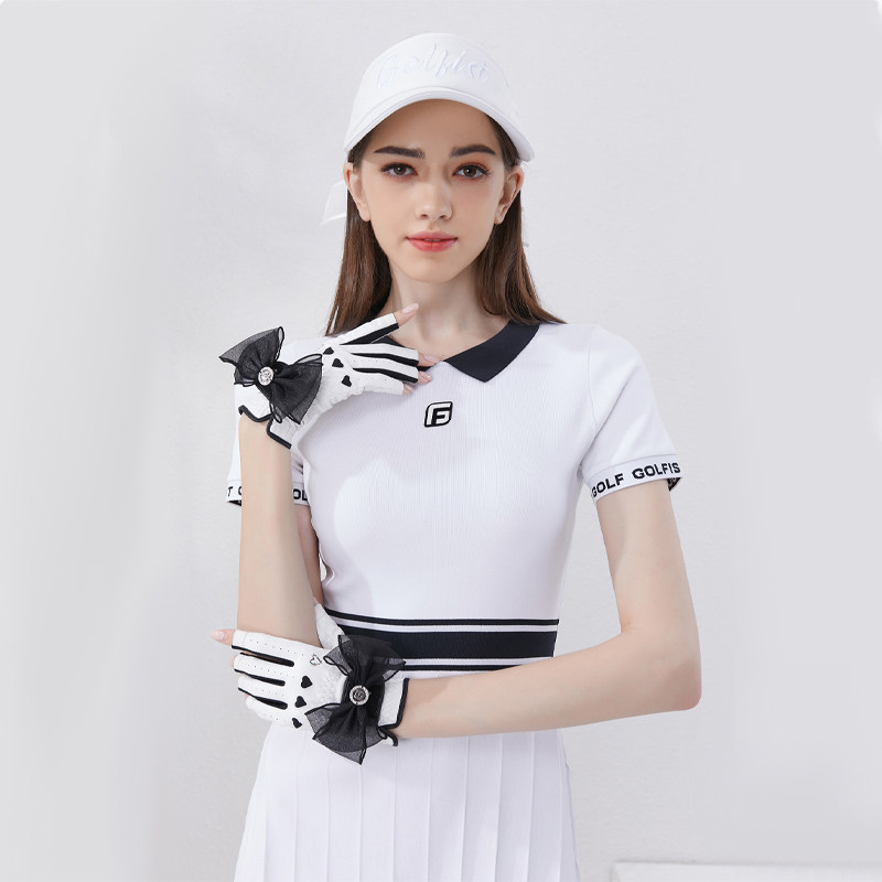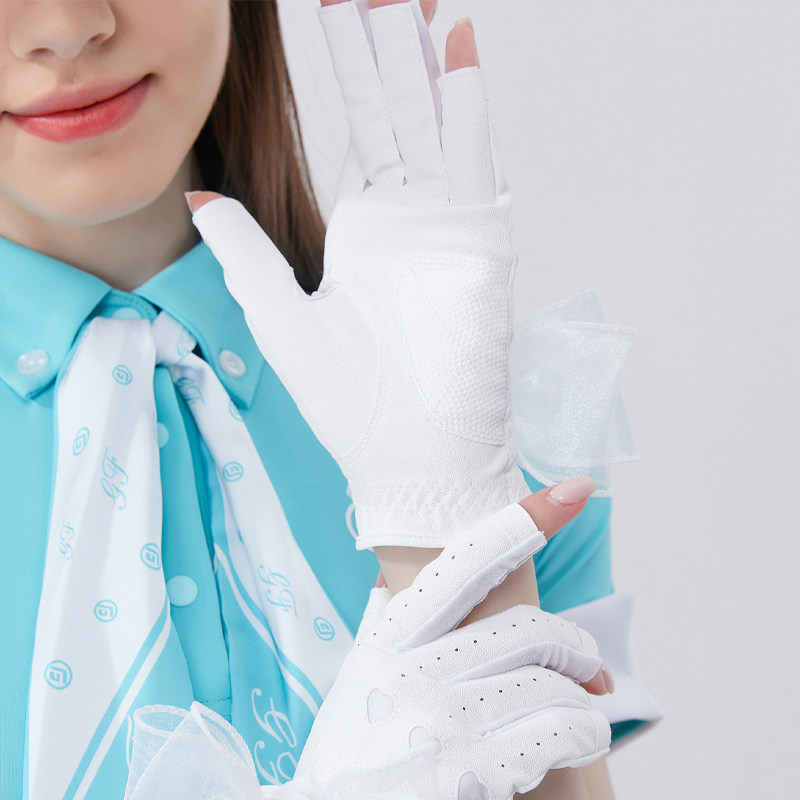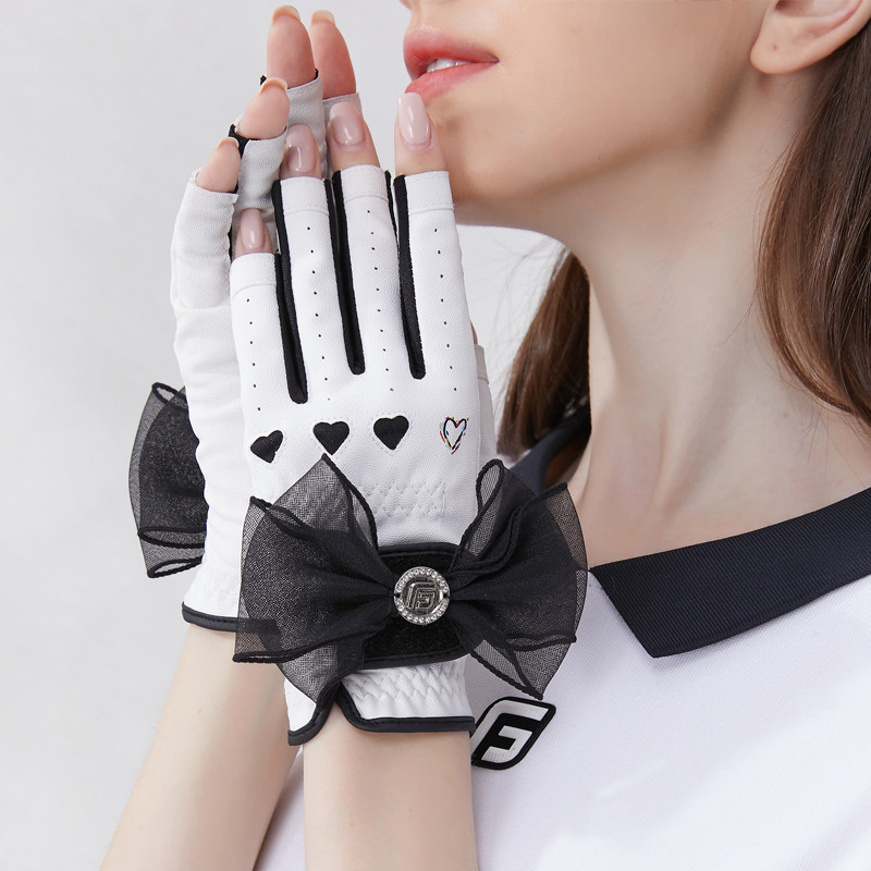 📚 双手高尔夫女士手套夏季露指触屏半指PU防滑蝴蝶结时尚运动手套