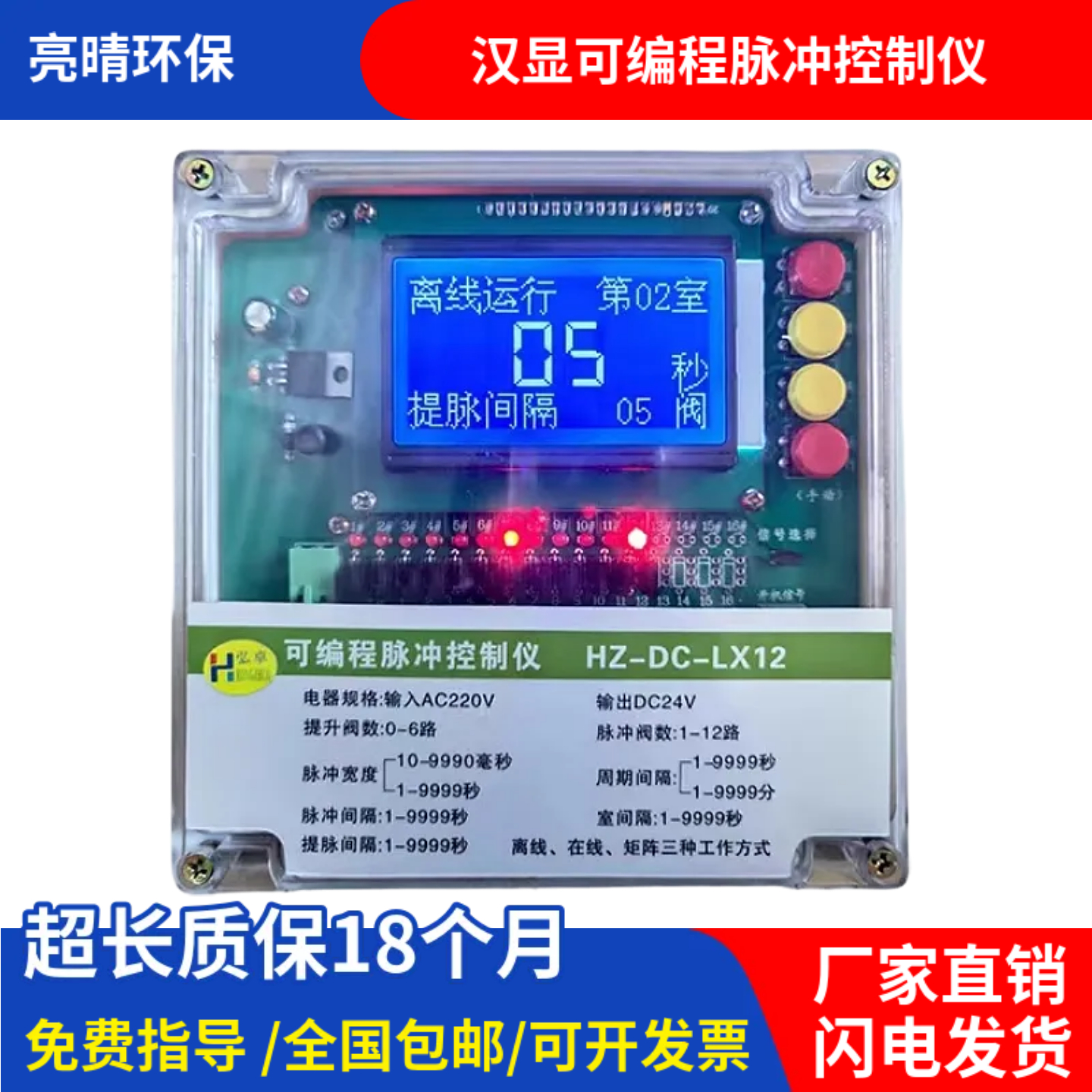 📚 可编程脉冲控制仪汉显HZ-DC-LX12D/16D20D30离线脉冲阀提升阀弘卓