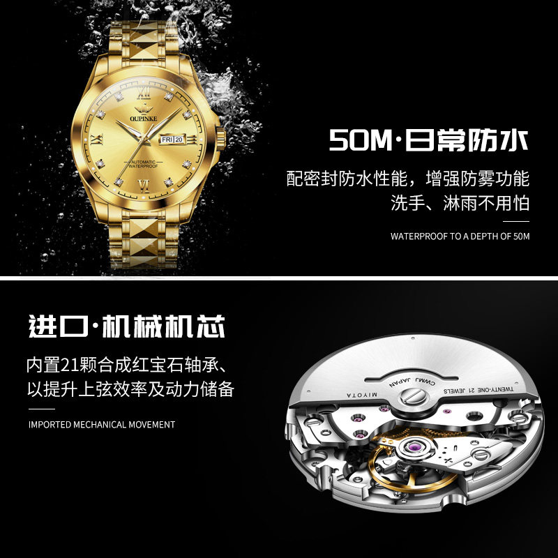 📚 瑞士欧品客正品牌进口机芯男士手表男款机械表官方旗舰店腕表十大