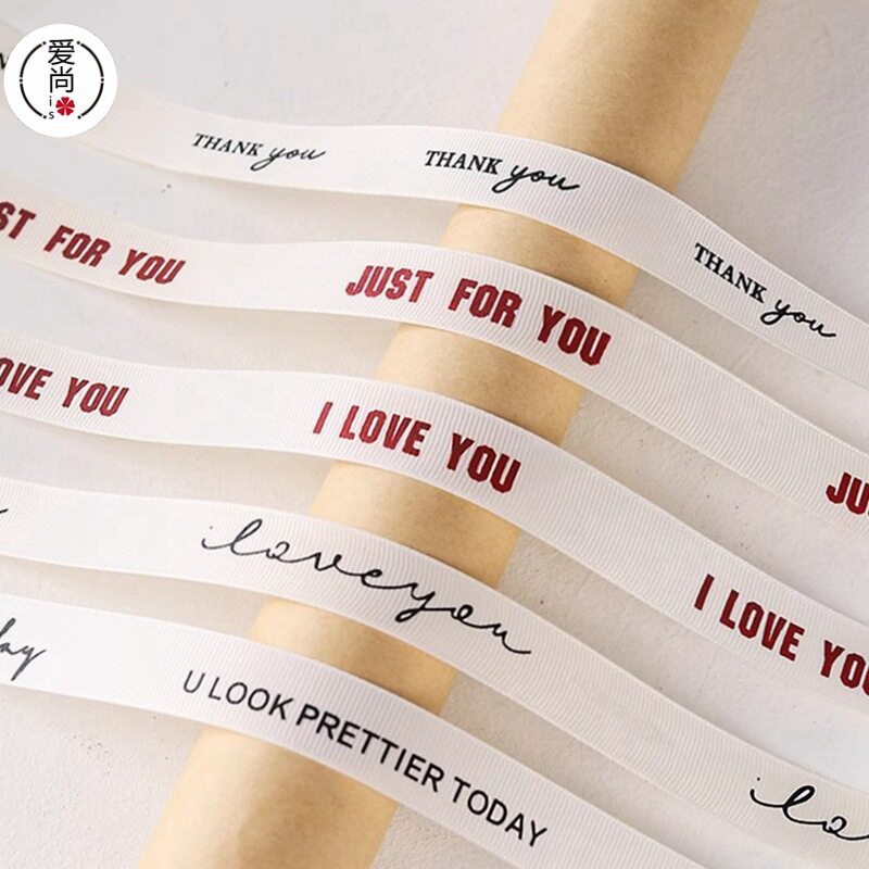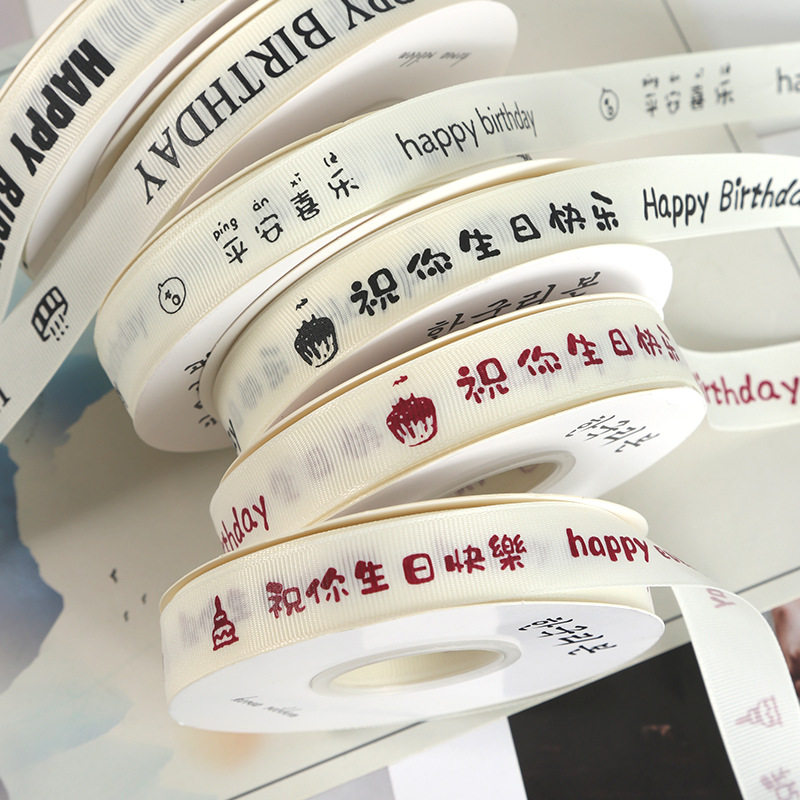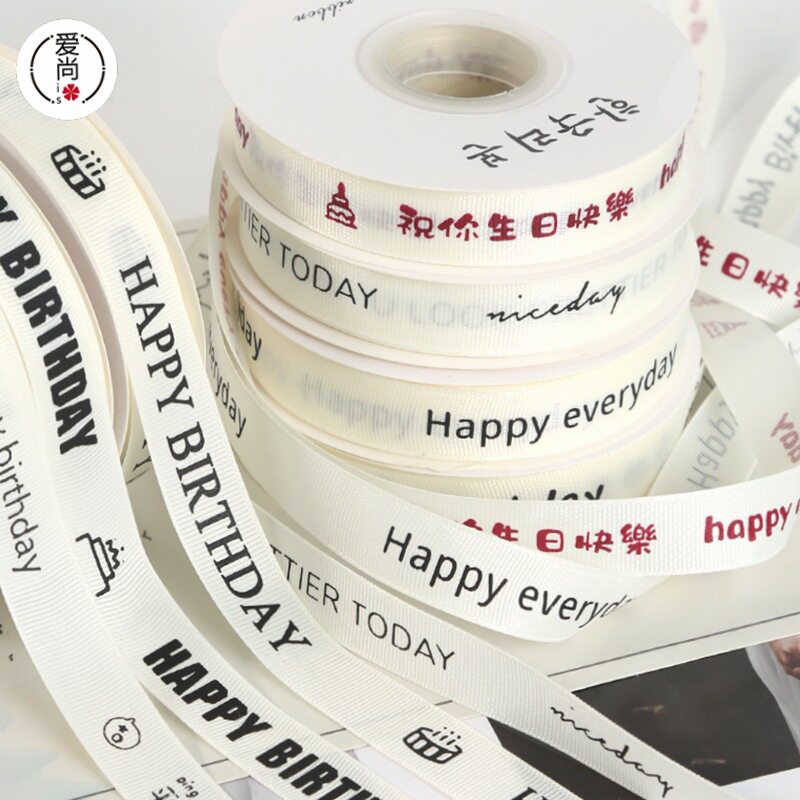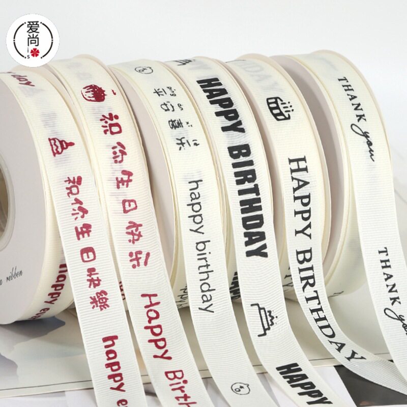 📚 风罗纹米白色生日蛋糕丝带礼物包装盒英文彩带花束缎带绸带