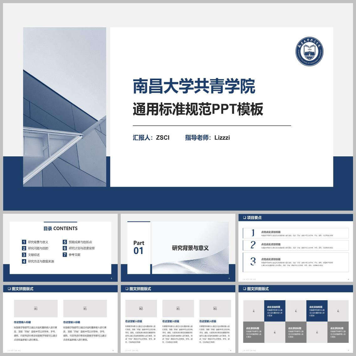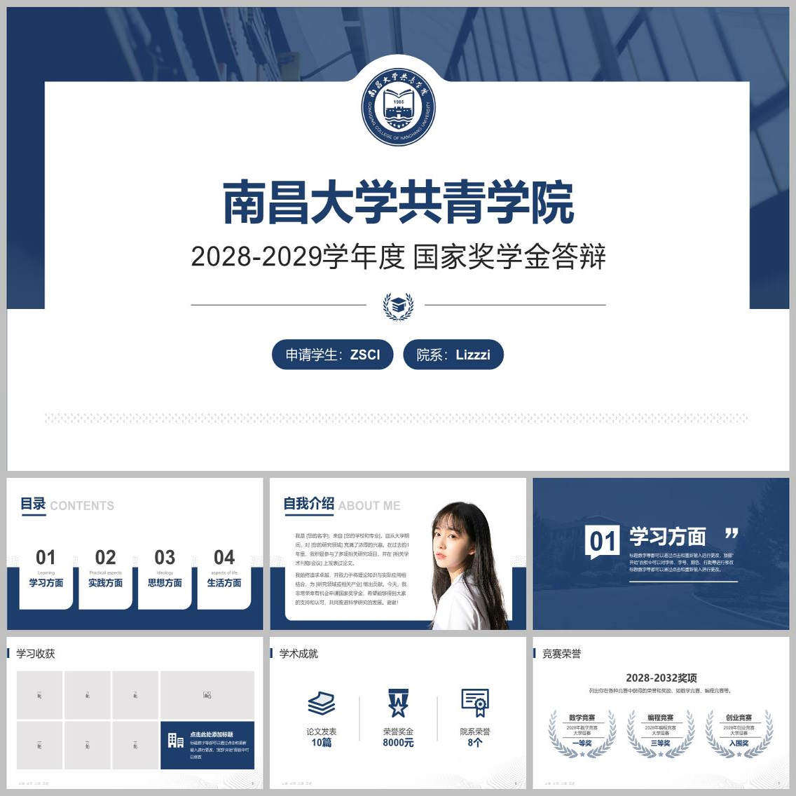📚 南昌大学共青学院PPT模板简约清新欧美毕业答辩汇报班会国奖开题