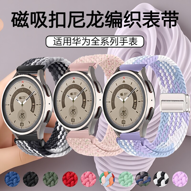 📚 适用华为GT6手表带gt5pro磁吸扣watch5新款尼龙编织表带运动弹力GT4pro智能女生gt2男生watch4秋季gt3冬季