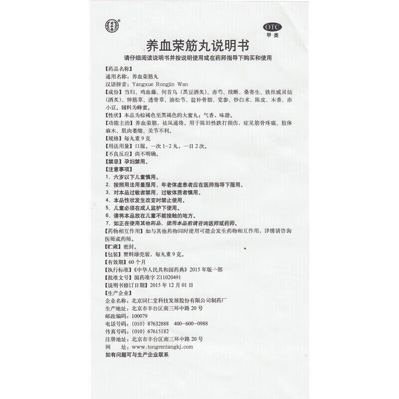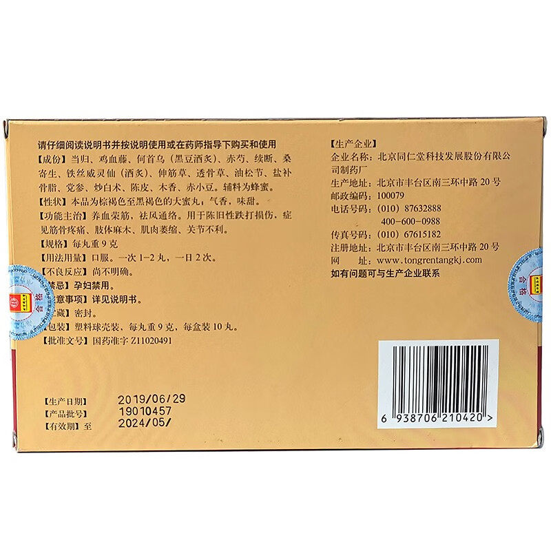 📚 同仁堂养血荣筋丸10丸养血荣筋祛风通络筋骨疼痛肢体麻木关节不利