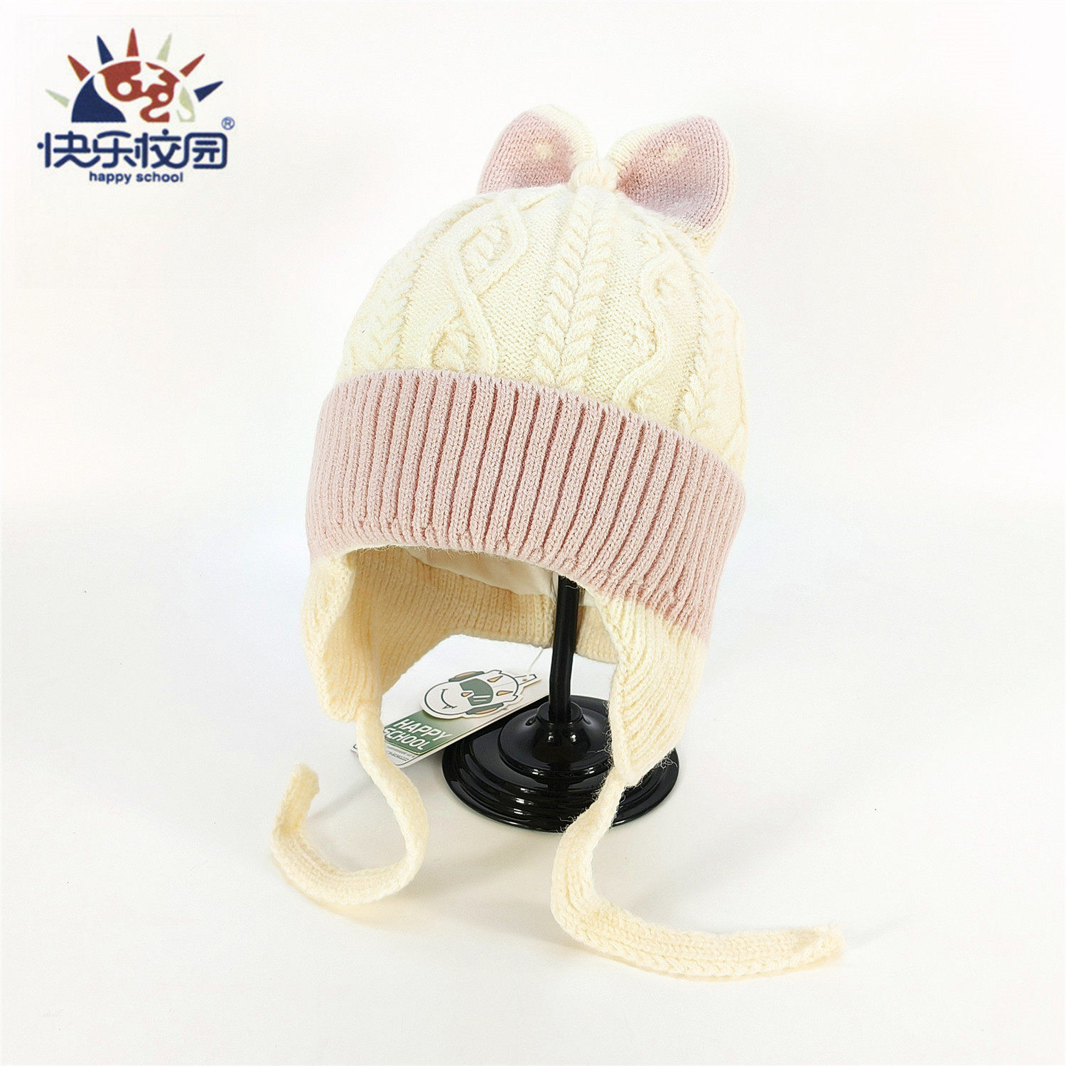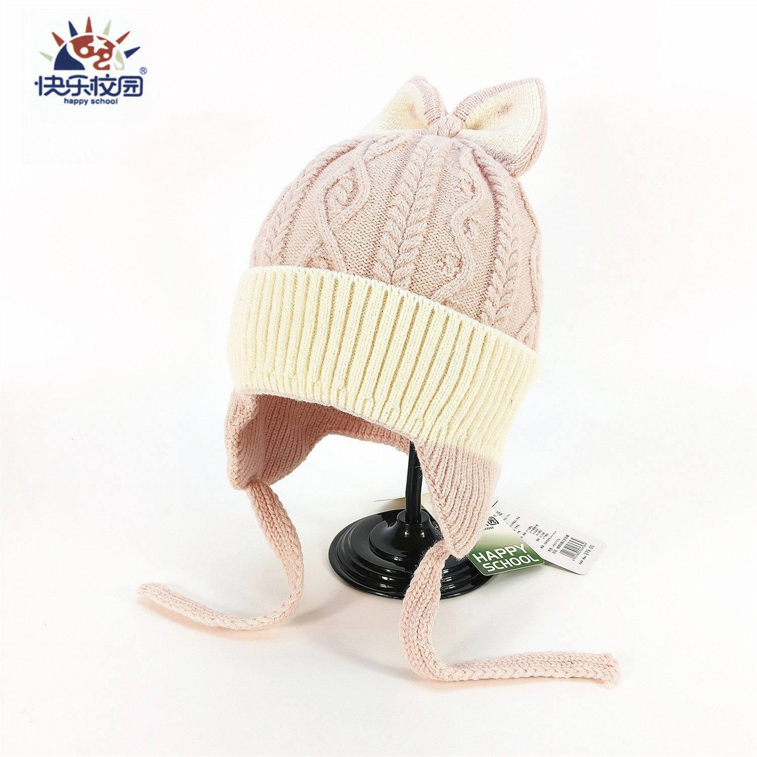 📚 女童针织毛线帽子儿童冬季保暖护耳毛球帽蝴蝶结女宝女孩纯棉里衬