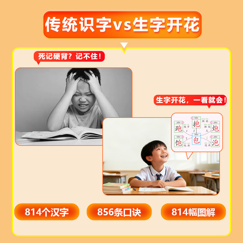 📚 汉知简生字开花汉字速记思维导图速记汉字小学生认字大全语文一二三年级必认偏旁部首结构思维导图快速记汉字识字大王造句学前神器
