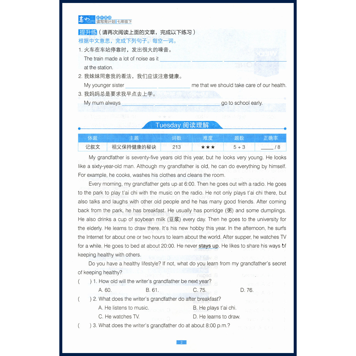 📚 2025春版 深圳金卷 初中英语读写周计划78年级下 王春如主编配套深圳英语教材沪教牛津版 题型英语阅读理解完形填空专项 电子答案
