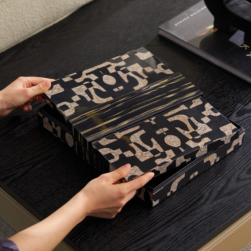 📚 韩式小资生活设计风格黑白灰家具店装饰摆件拼图纸巾盒托盘艺术感