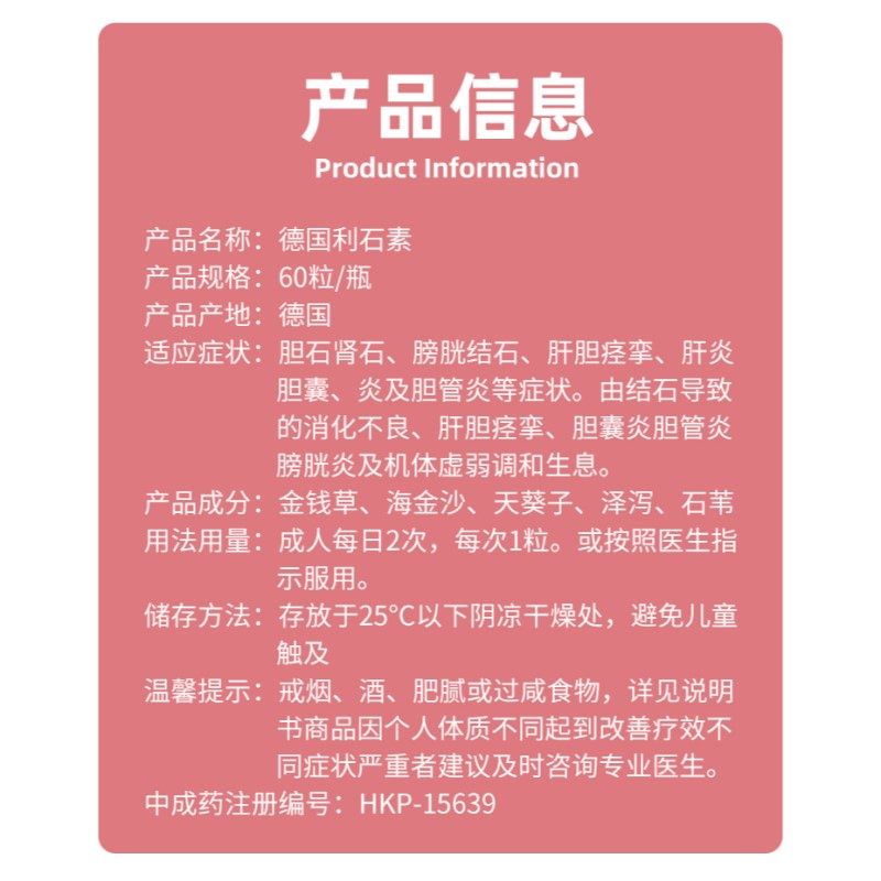 📚 德国BIOCIWME利石素60粒消石素肾结石胆结石膀胱结石清肝利胆