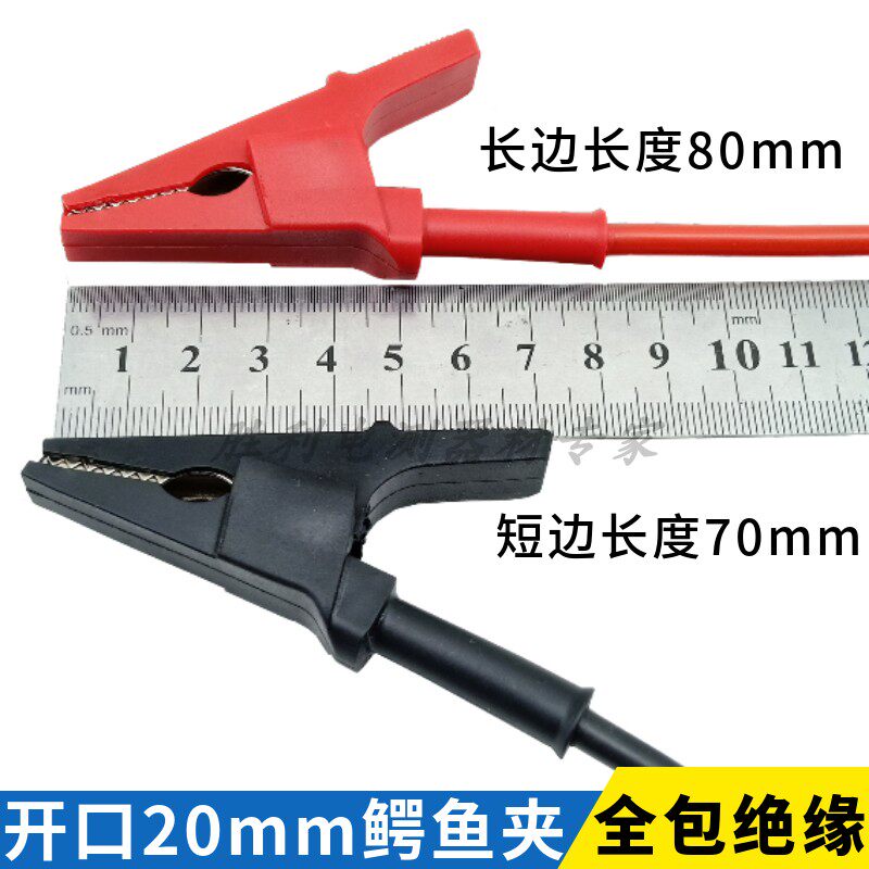 📚 单头带线鳄鱼夹/开口20mm全部绝缘夹子线测试线单头连接线电源线