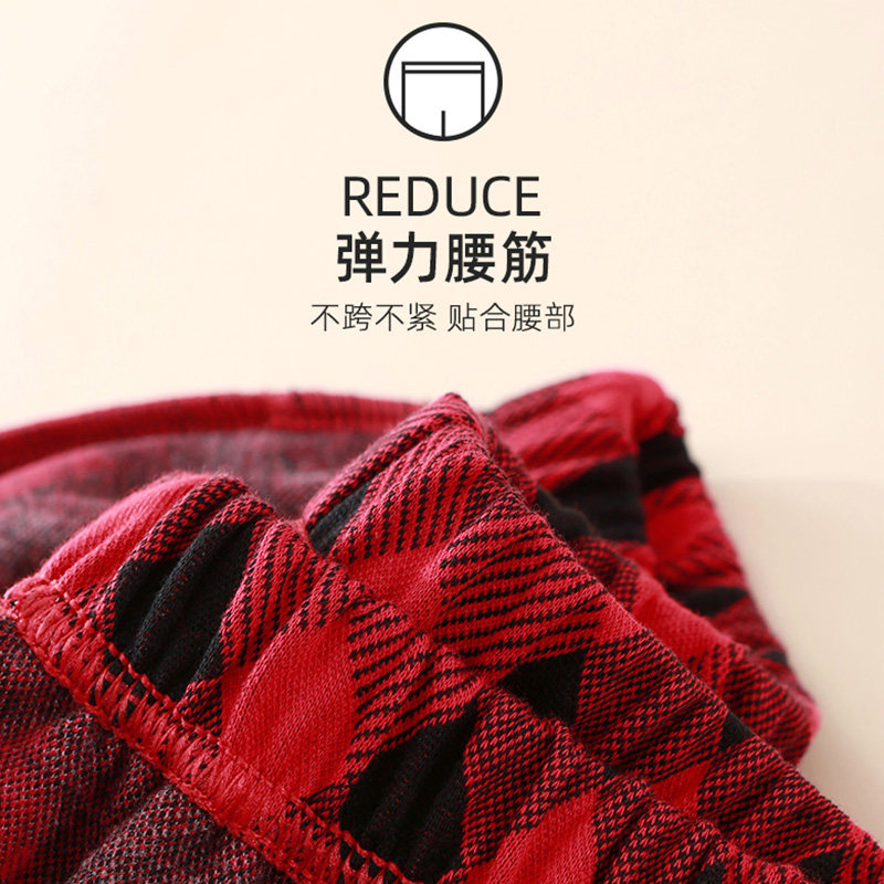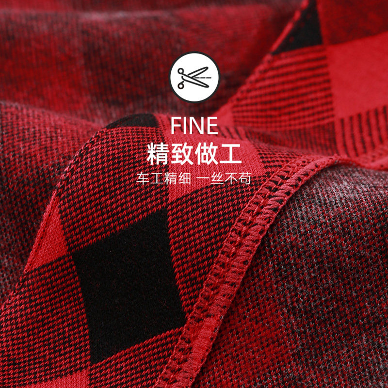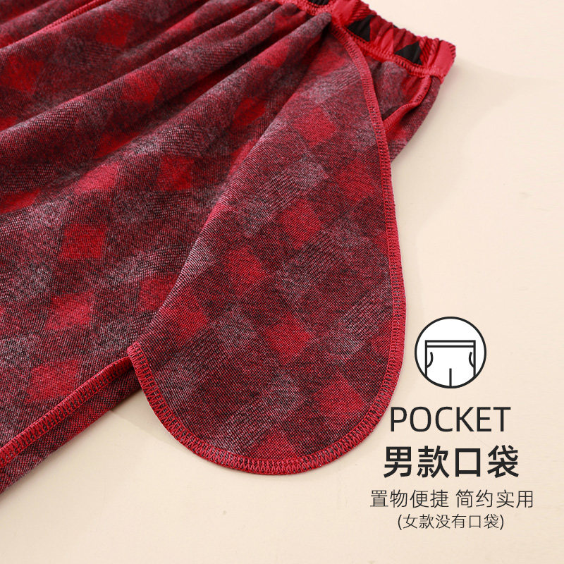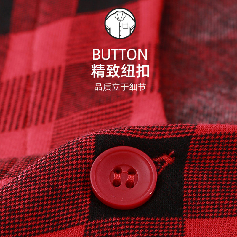 📚 仕乐男士家居套装提花格子睡衣女春秋家居服可外穿红色本命年马年