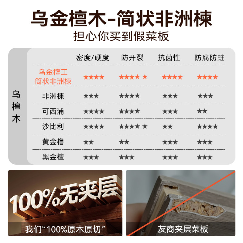 📚 实木乌檀木菜板防霉抗菌抗裂家用切菜板砧板案板百年龄食品级厨房