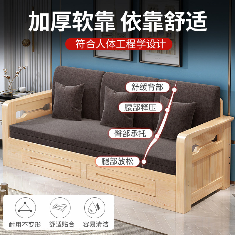 📚 实木沙发床两用客厅多功能可折叠伸缩床小户型经济双人推拉沙发床
