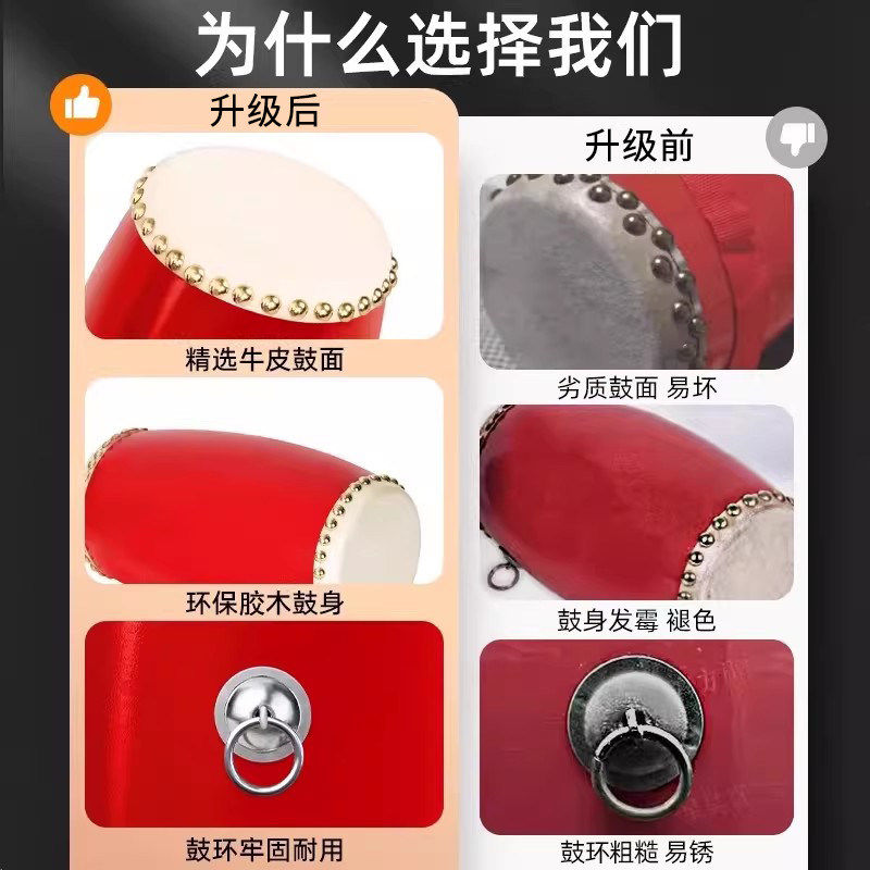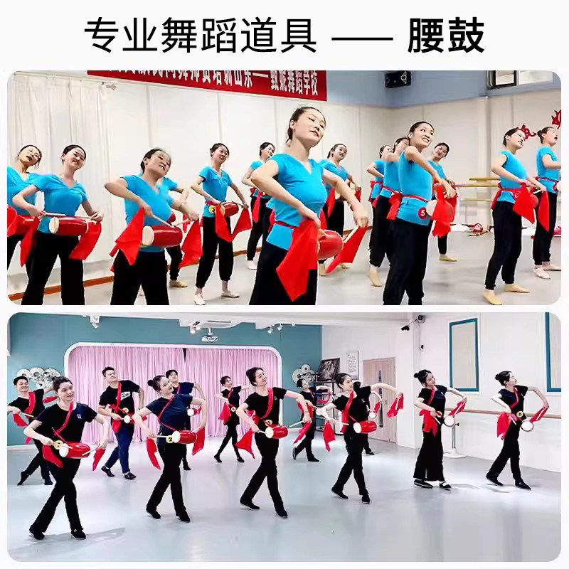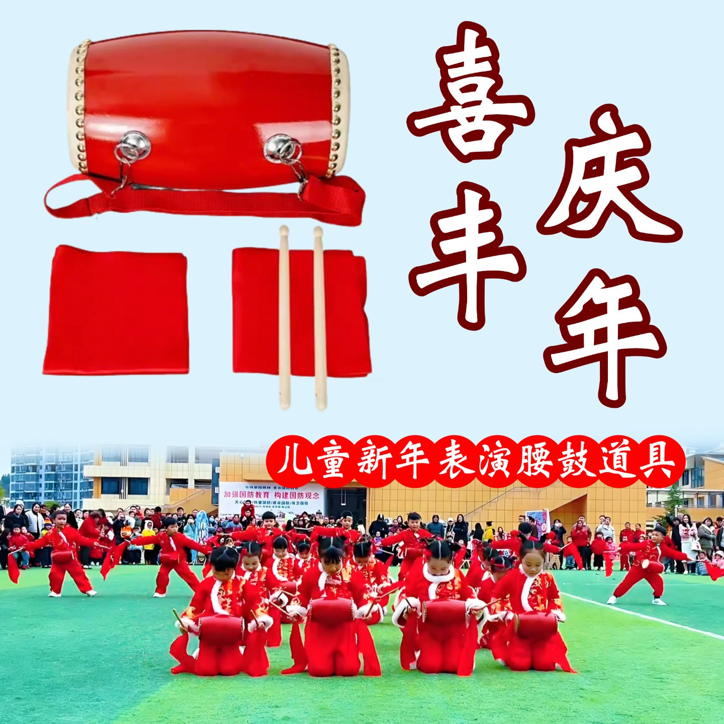 📚 喜庆丰年腰鼓舞蹈道具全套鼓棒红绸带牛皮鼓儿童新年表演演出专用