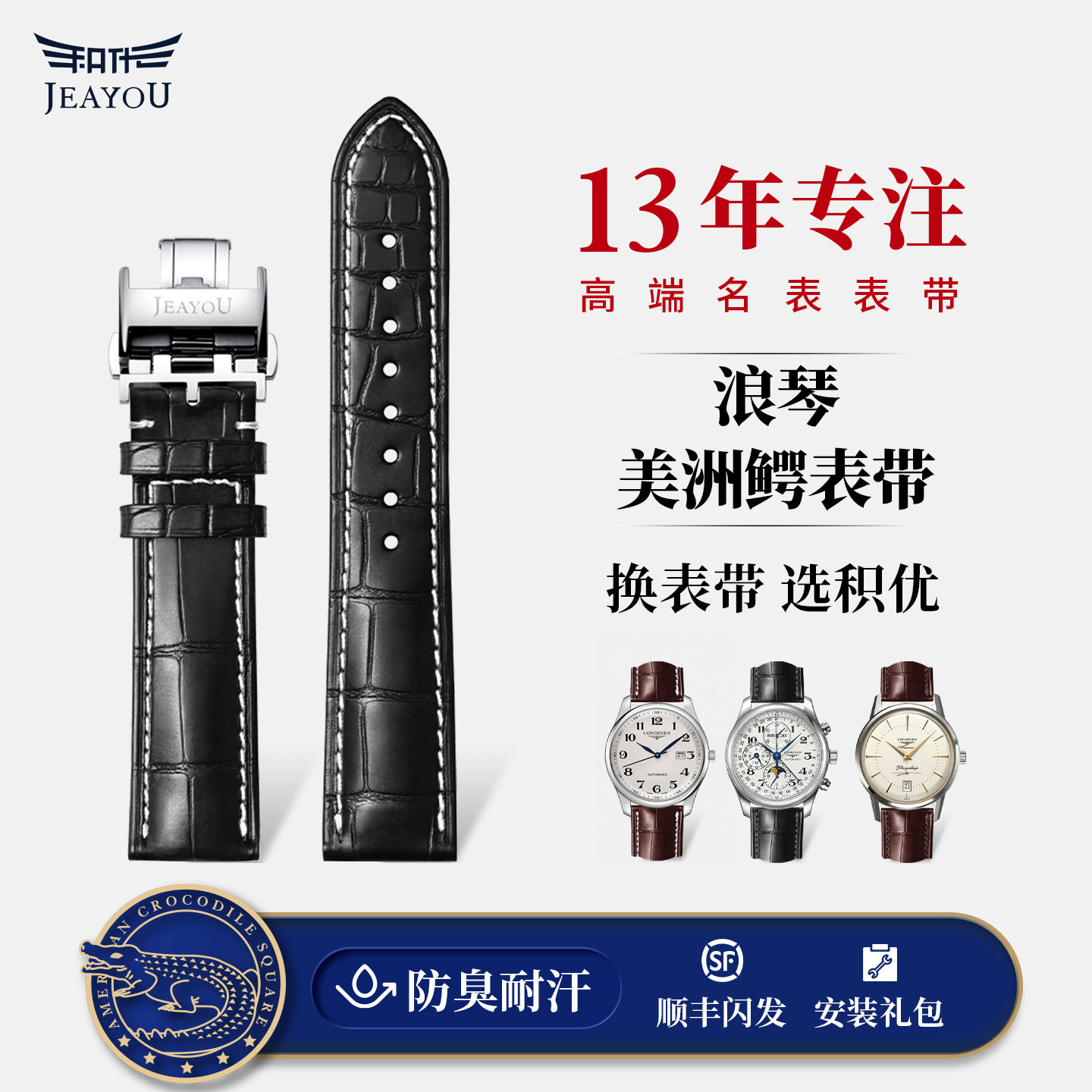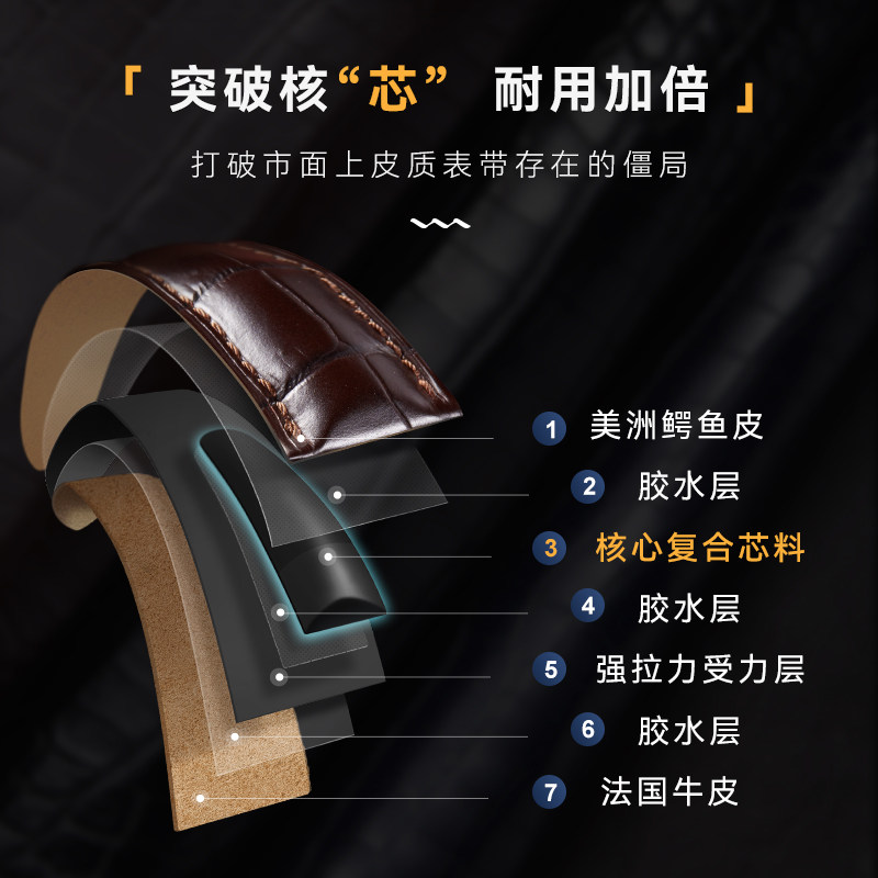 📚 积优浪琴美洲鳄鱼皮手表带适用名匠月相开创者先行者博雅真皮表带