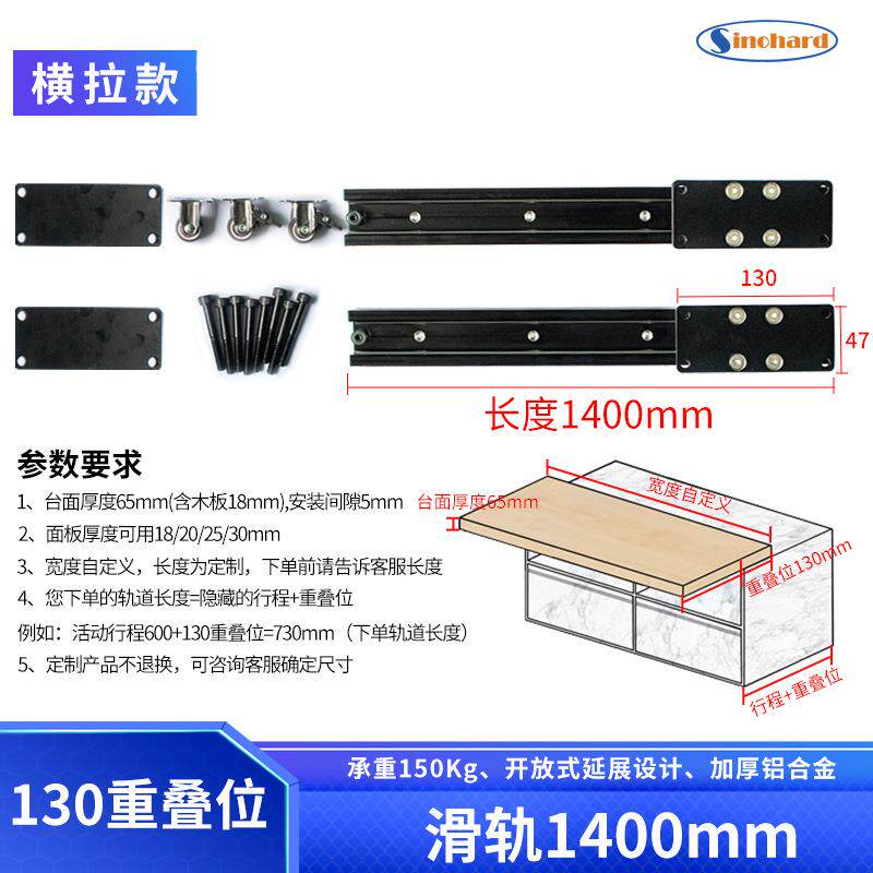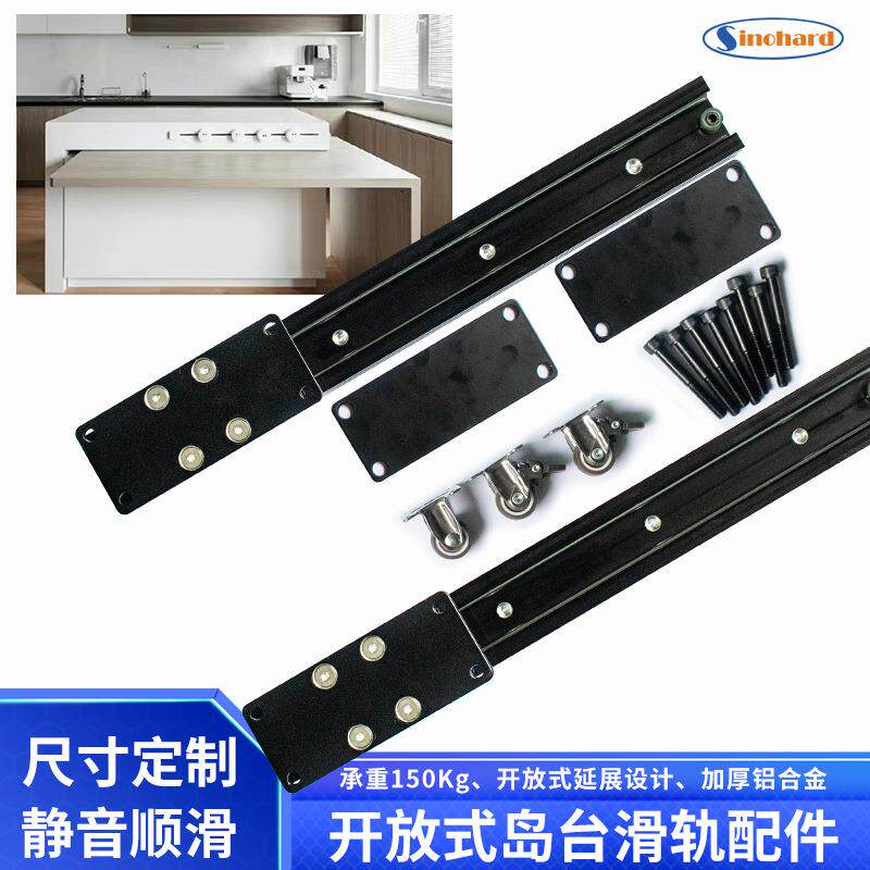 📚 47重型滑轨厨房餐厅餐桌餐台横拉伸缩岩板中岛台延长直线重导轨