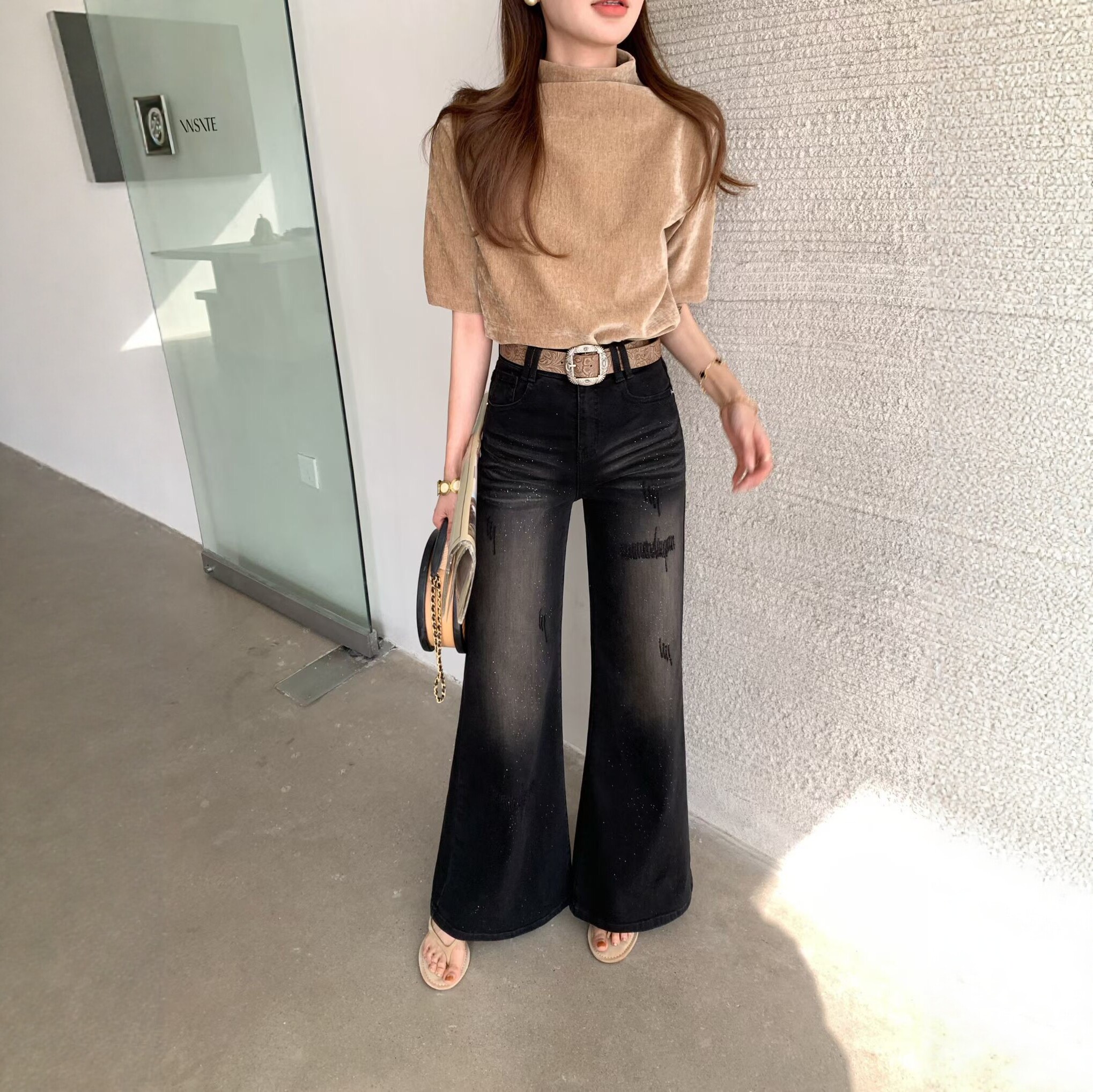 📚 ZM欧洲站高腰微喇牛仔裤女修身显瘦拖地长裤高级感