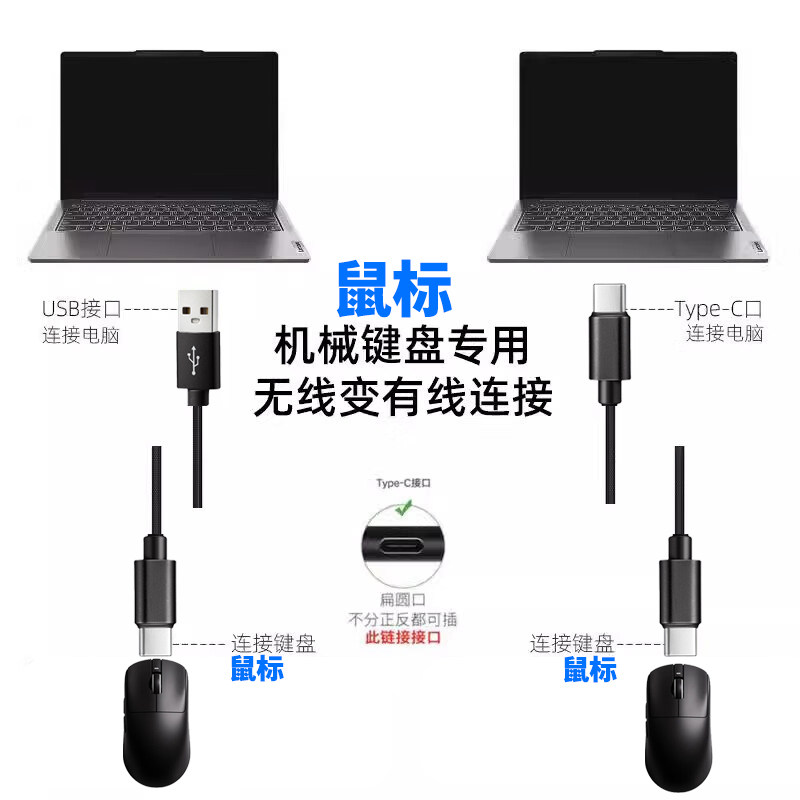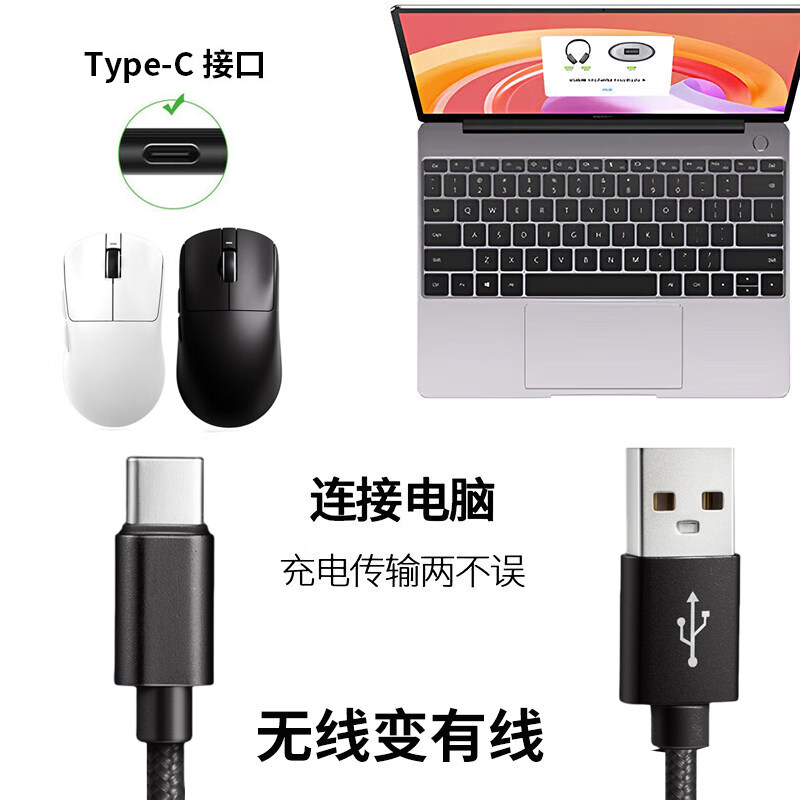 📚 适用雷柏VT9PRO无线鼠标充电线台式电脑USB数据线VT1PRO MAX MT760L蓝牙鼠标连接线无线变有线TYPE-C口电源线
