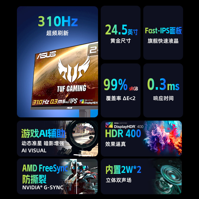 📚 华硕显示器VG259QMRL5A电竞1K300Hz高刷25英寸240台式电脑ROG屏24