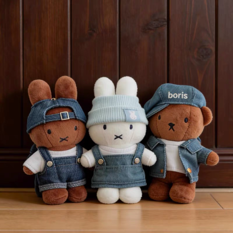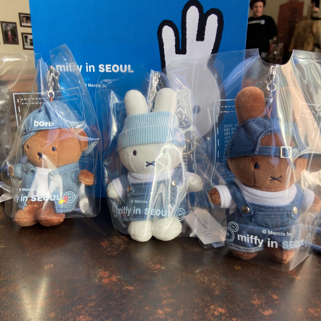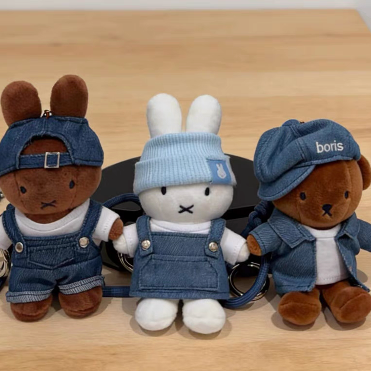 📚 新品首尔限定可爱牛仔米菲兔和鲍里斯小熊迷你毛绒礼物书包挂件