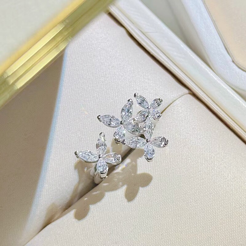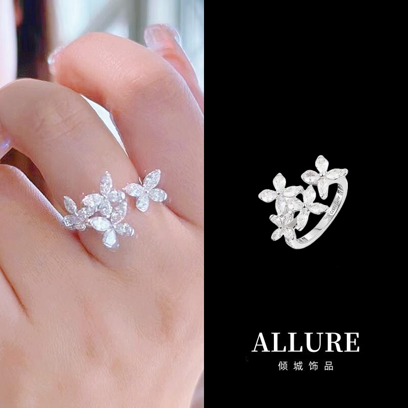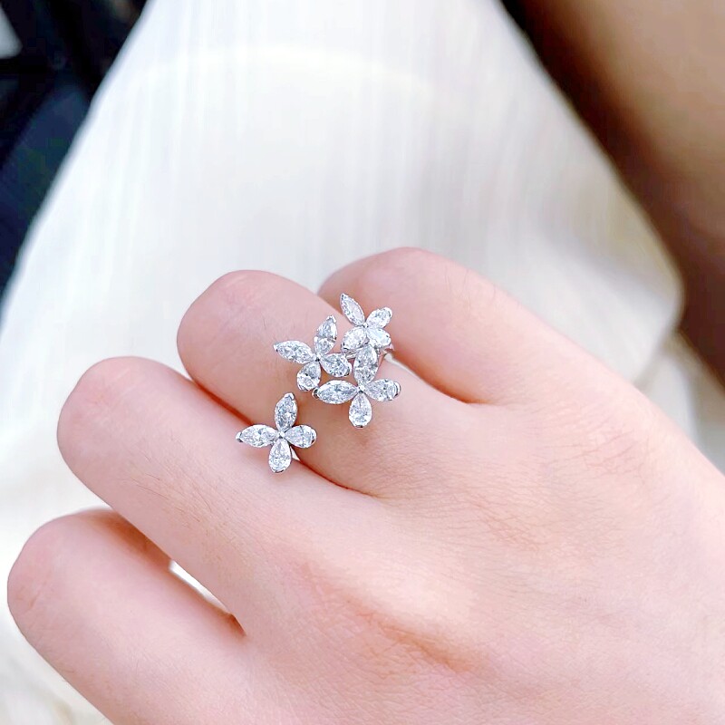 📚 新款时尚优雅气质马眼石缱绻蝴蝶开口戒指环S925银镀白金食指戒女
