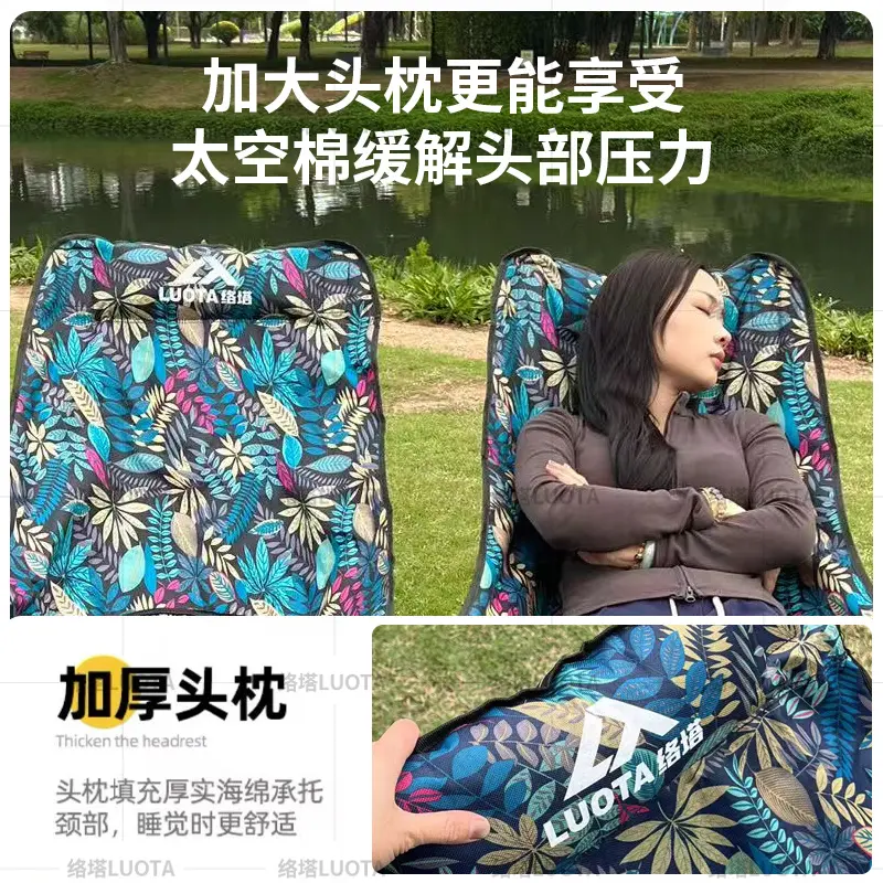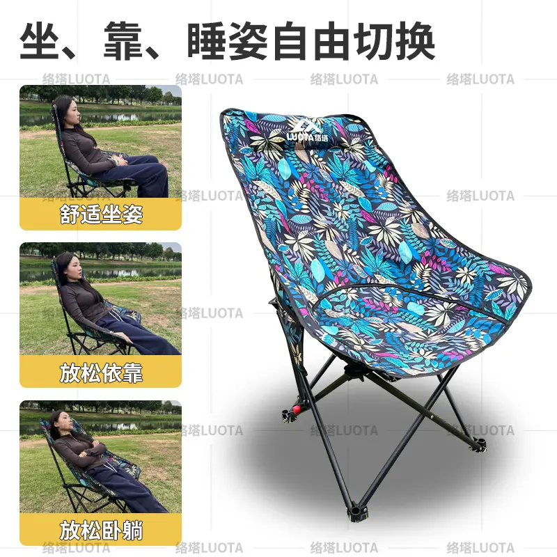 📚 络塔三档调节升级高背躺椅月亮椅带脚托户外午休便捷加长折叠椅
