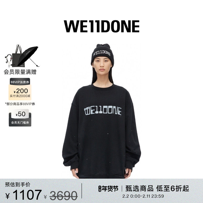 📚 WE11DONE中性男女同款经典未来主义logo印花长袖圆领卫衣