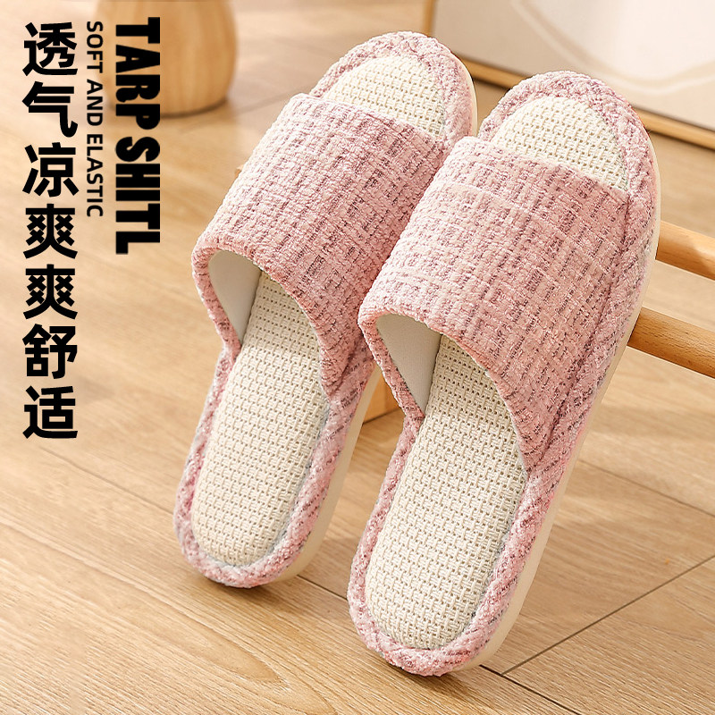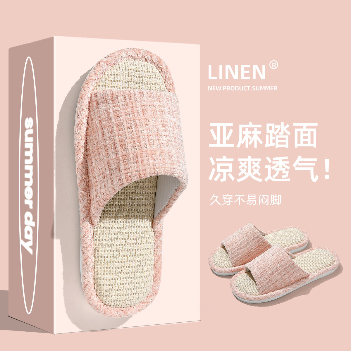 📚 透气吸汗亚麻拖鞋女款四季室内家居防滑软底静音春秋棉麻布拖鞋女