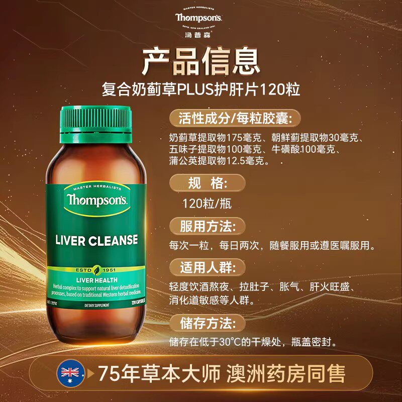 📚 澳洲thompsons汤普森护肝水水飞蓟宾120粒奶蓟草熬夜养肝独醒解酒