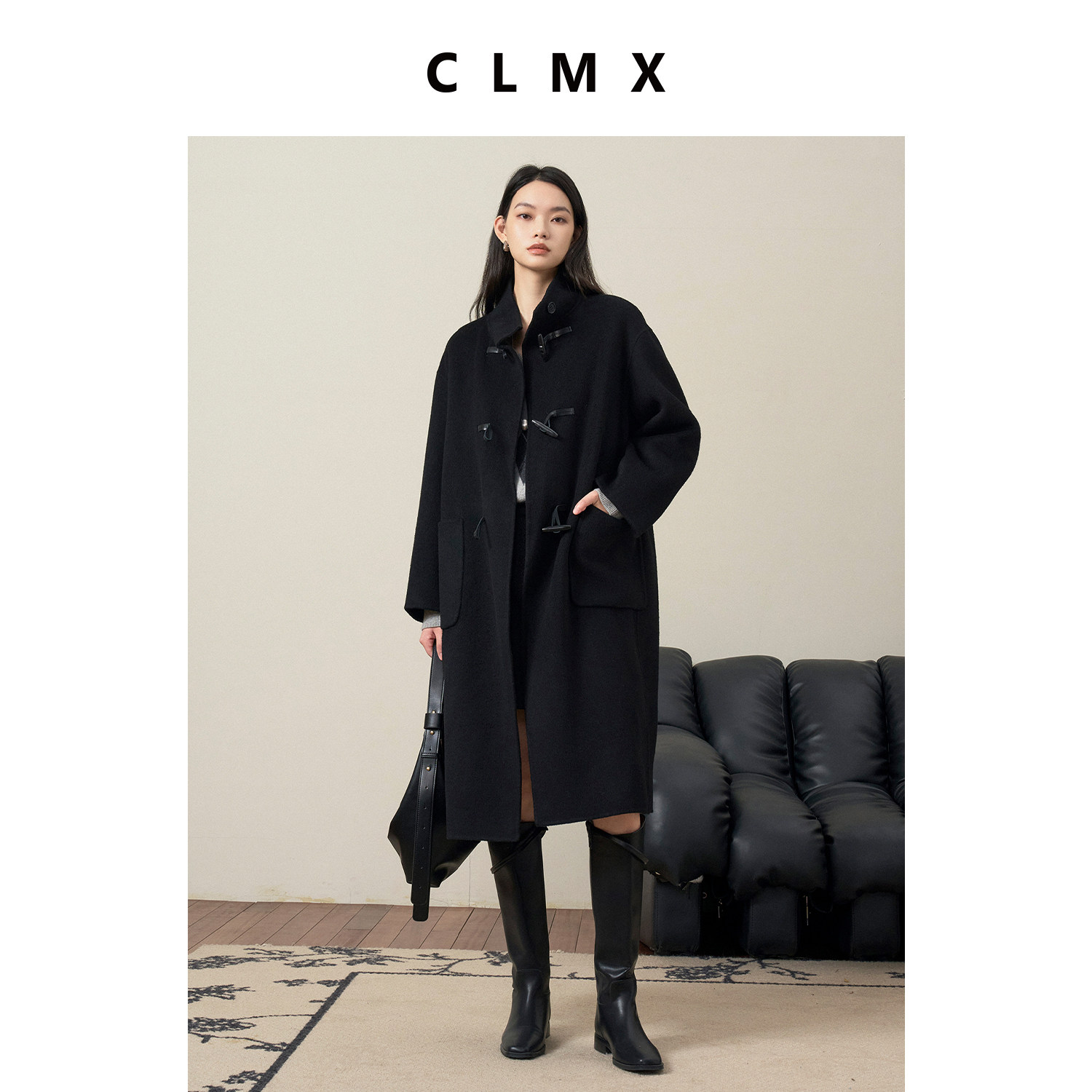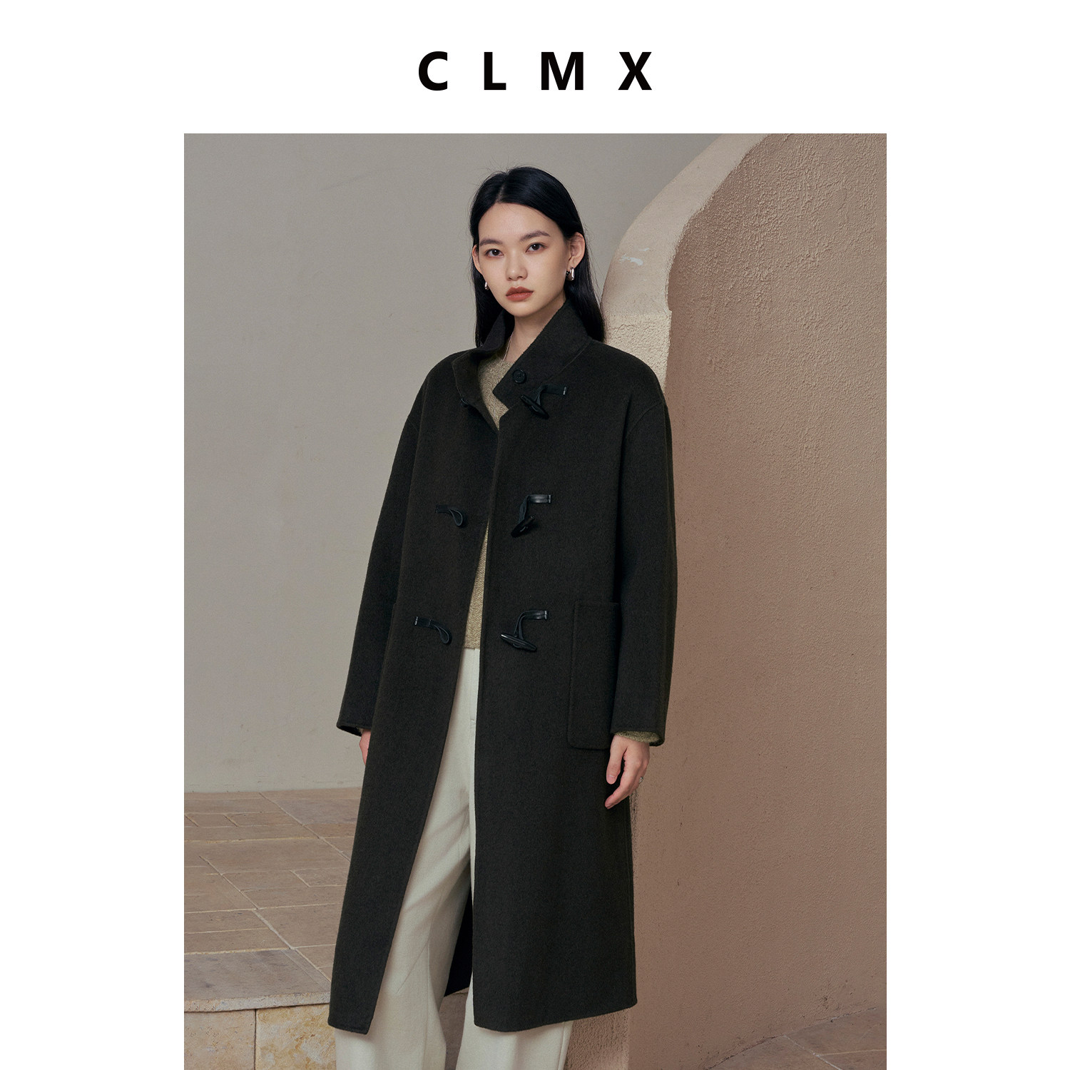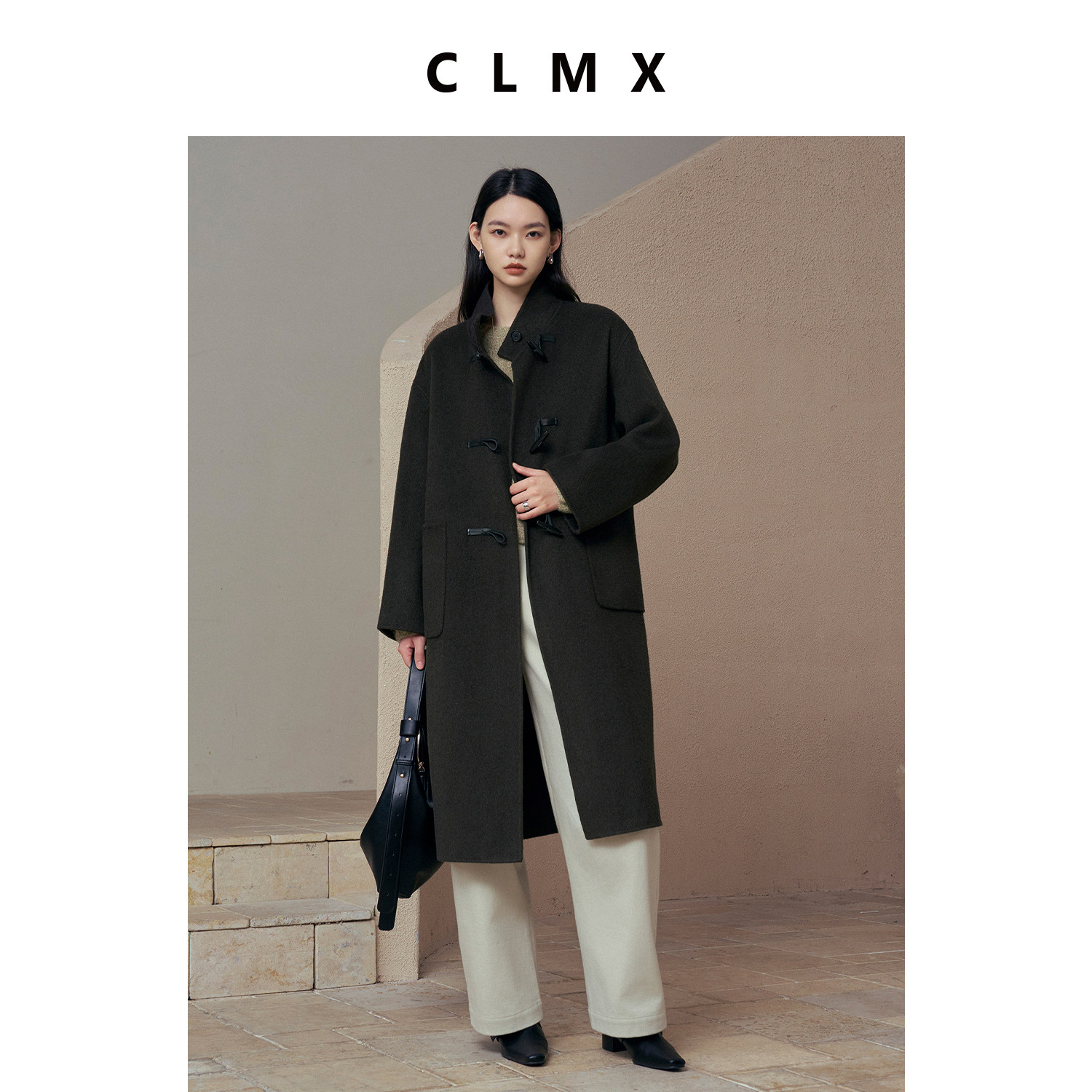 📚 CLMX纽扣大衣羊毛羊绒混纺双面细织短顺毛面料秋冬中长款简约外套