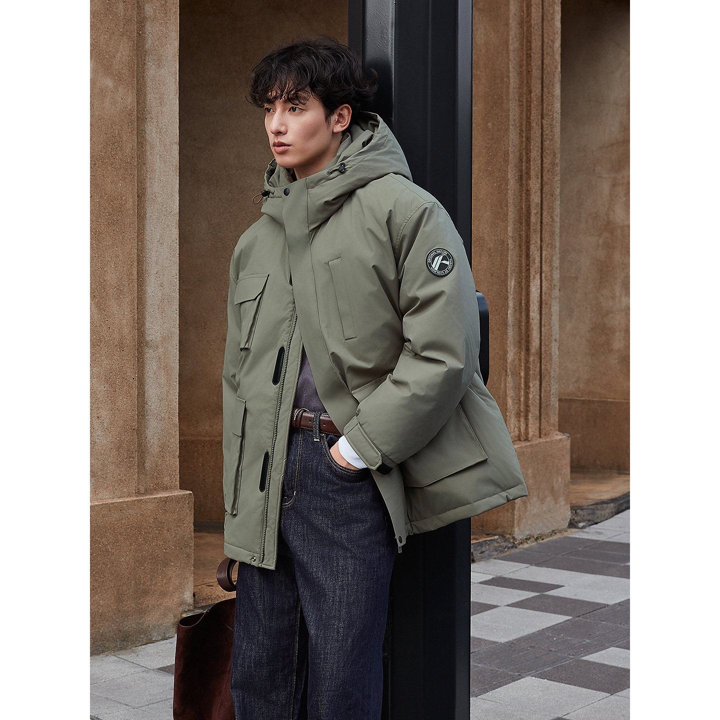 📚 GXG男装 多口袋中长款羽绒服连帽羽绒外套保暖 24冬季新品