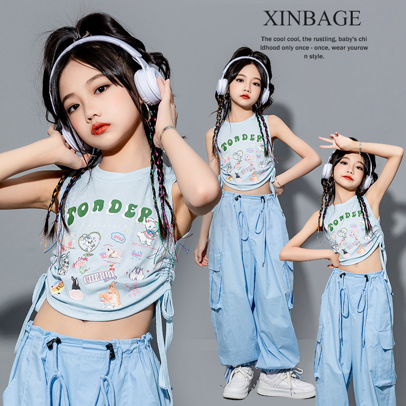 📚 夏季街舞儿童潮服套装演出服少儿模特走秀潮装jazz女童爵士舞服装