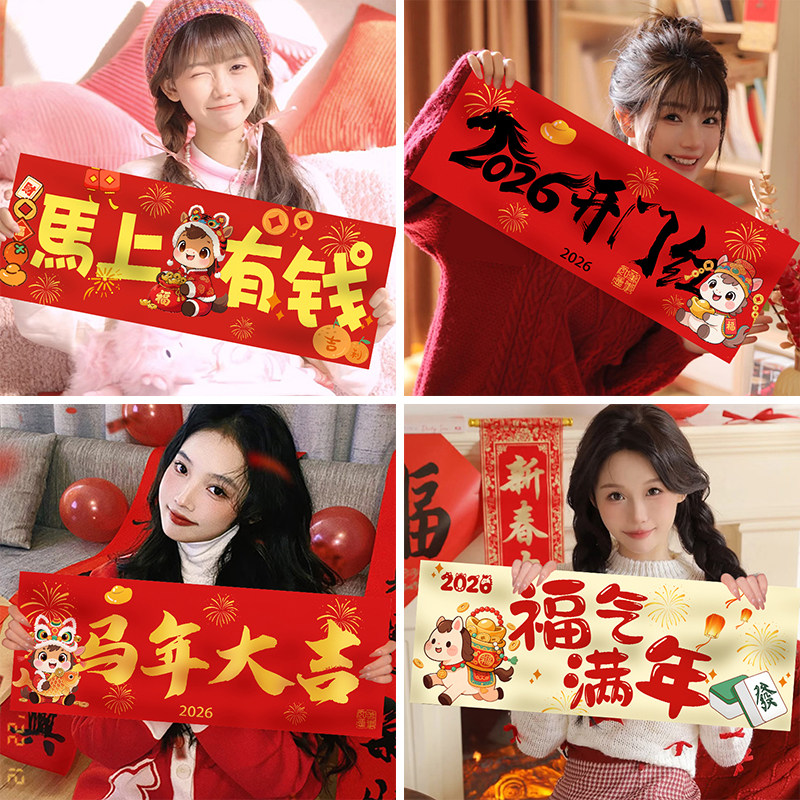 📚 2026迎新马年手持小横幅对联装饰公司元旦晚年会拍照道具场景布置