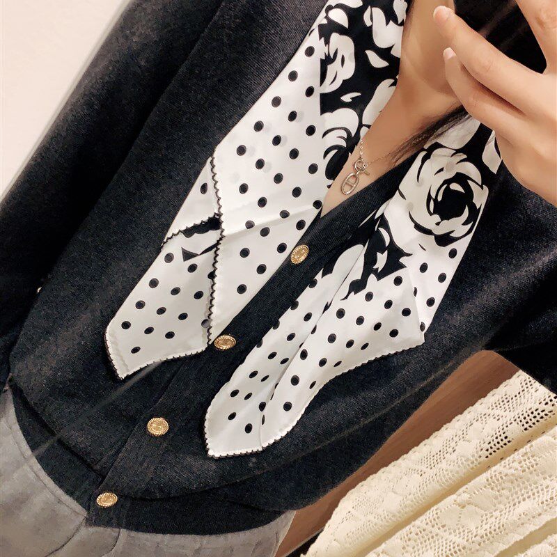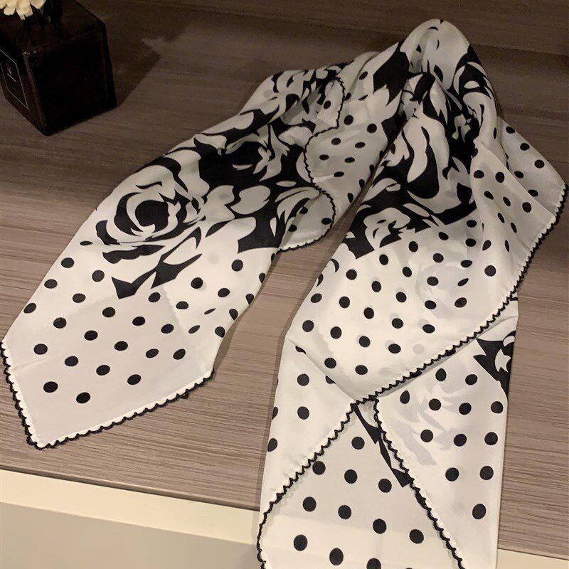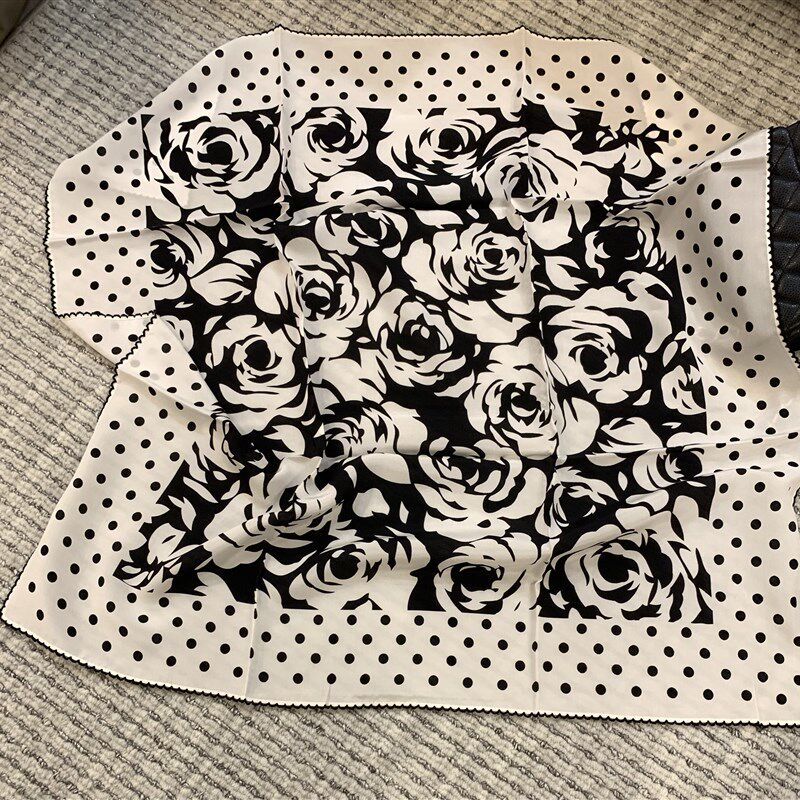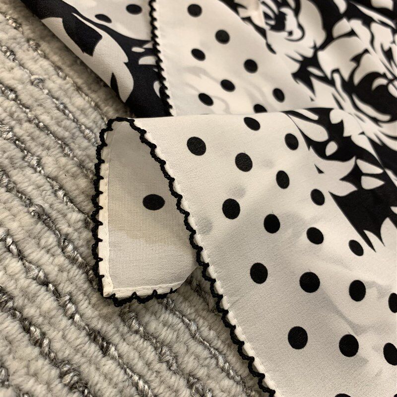 📚 夏日搭配神器 波点山茶 手工勾花边黑白真丝双绉丝巾 6565