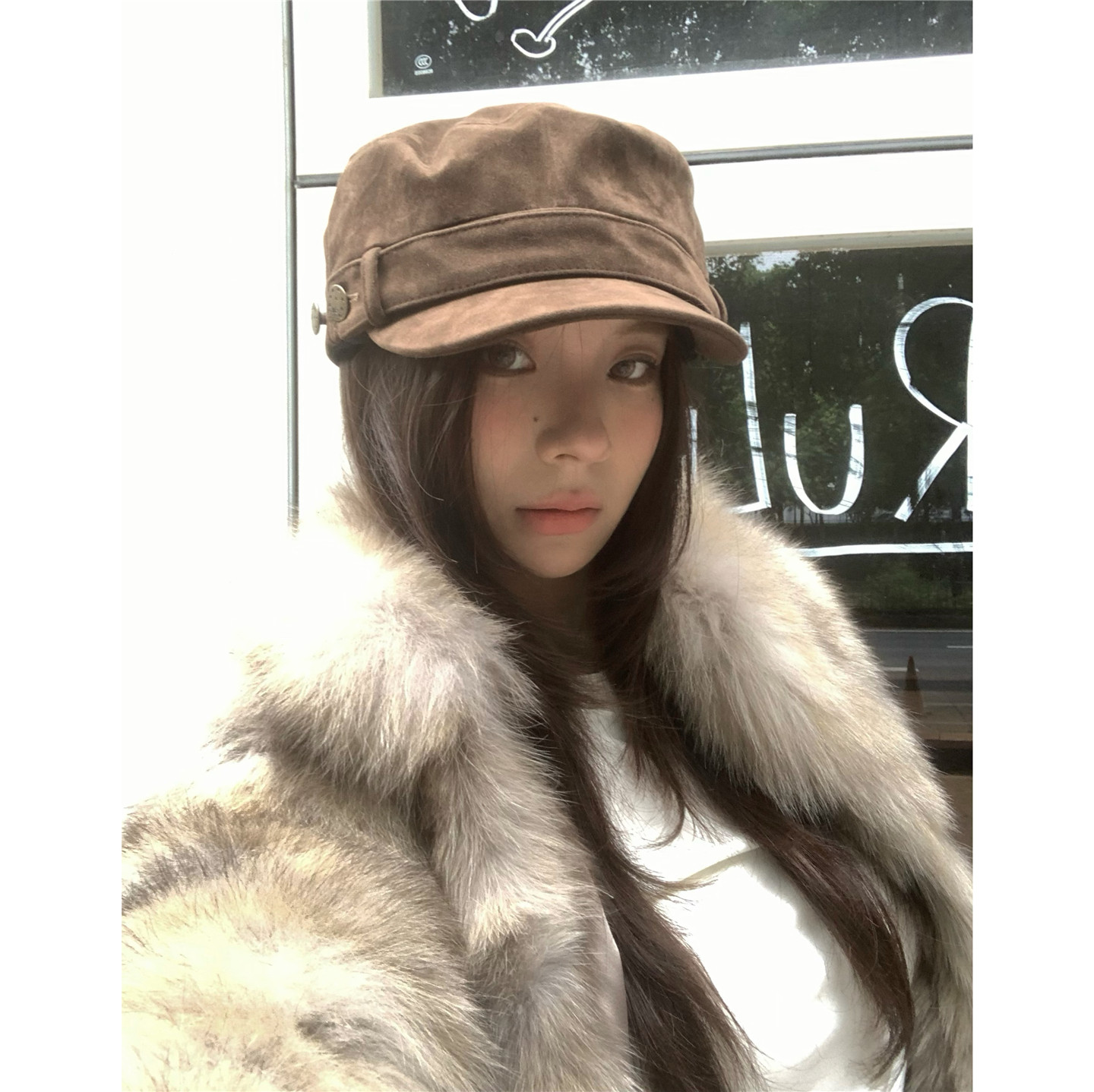 📚 时髦定制|穿搭博主b入麂皮绒平顶马术帽女冬骑士帽显脸小报童帽
