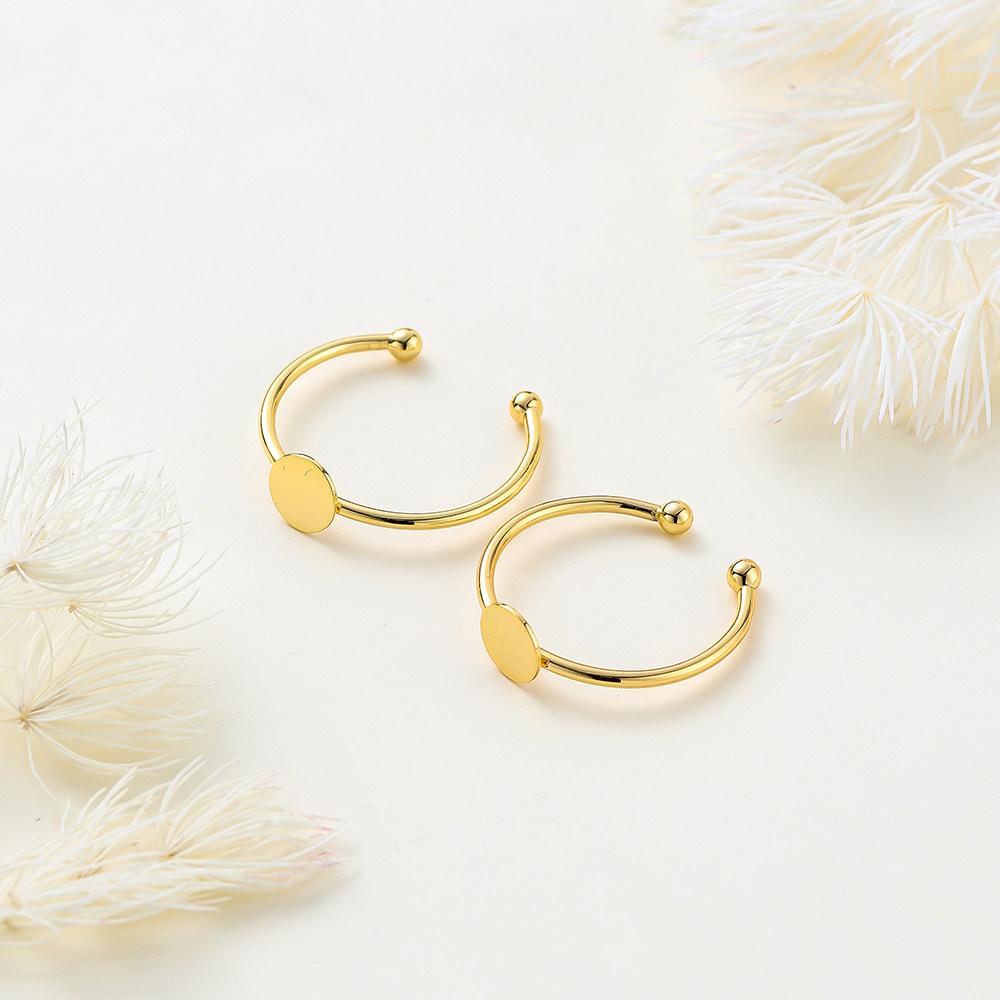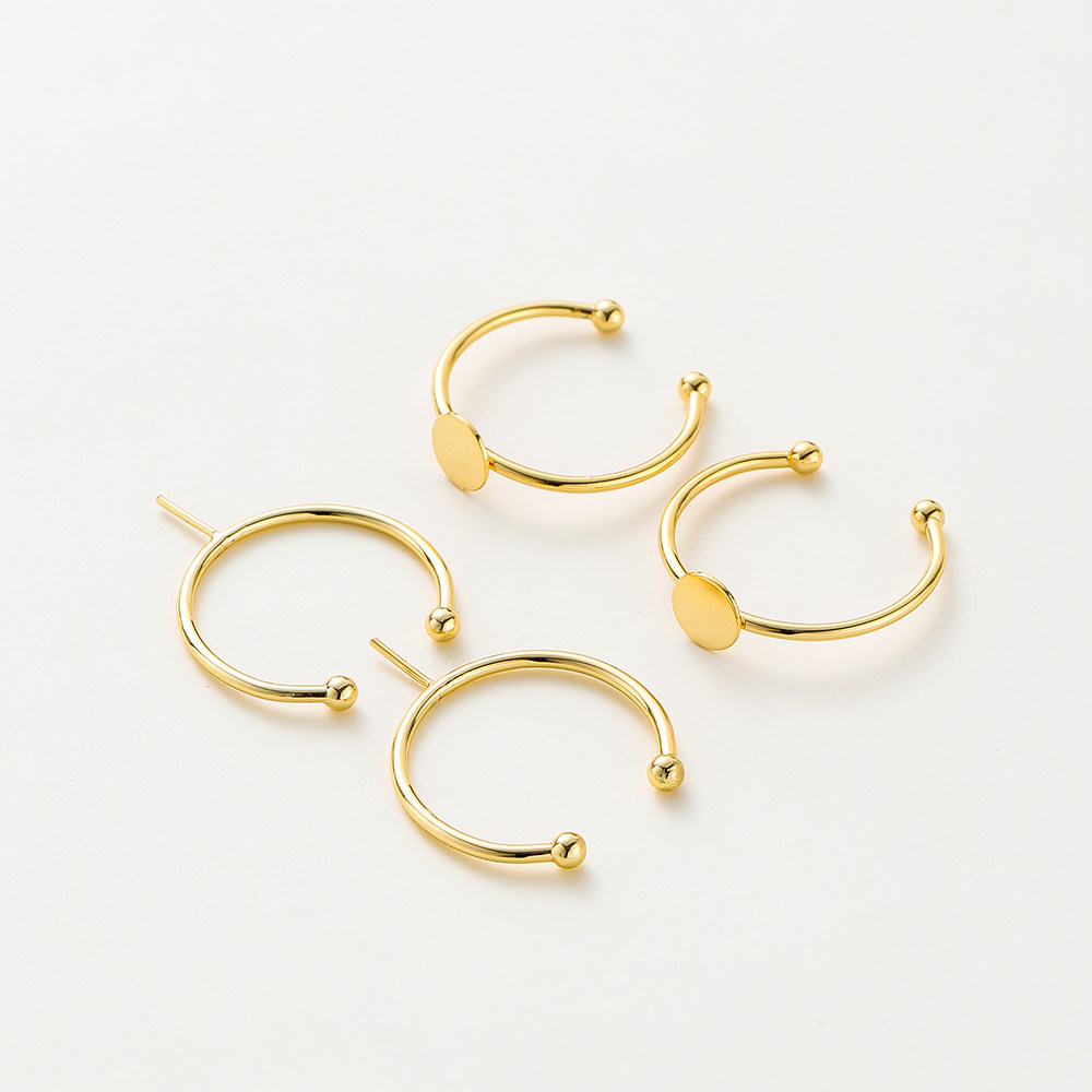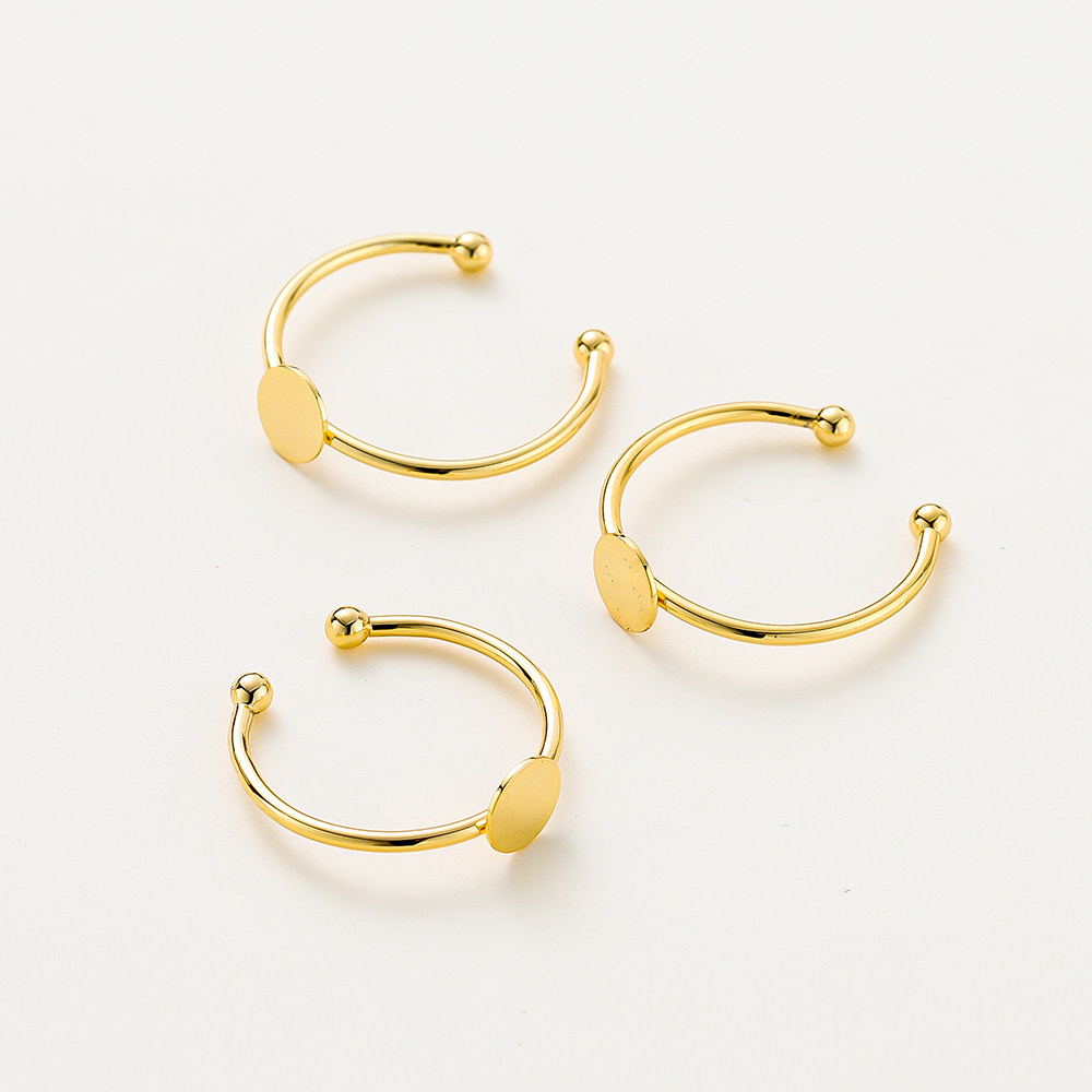 📚 18k金戒指托空托手工diy珍珠戒指平托粘贴戒面半孔珠针镶饰品配件