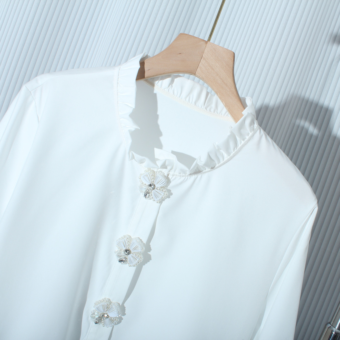 📚 欧货设计感重工钉珠荷叶边衬衫女2025年冬季新款立领休闲洋气上衣