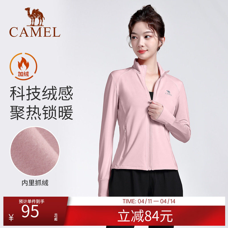 📚 骆驼连帽瑜伽服外套女薄绒春季紧身健身衣服上衣运动服拉链开衫