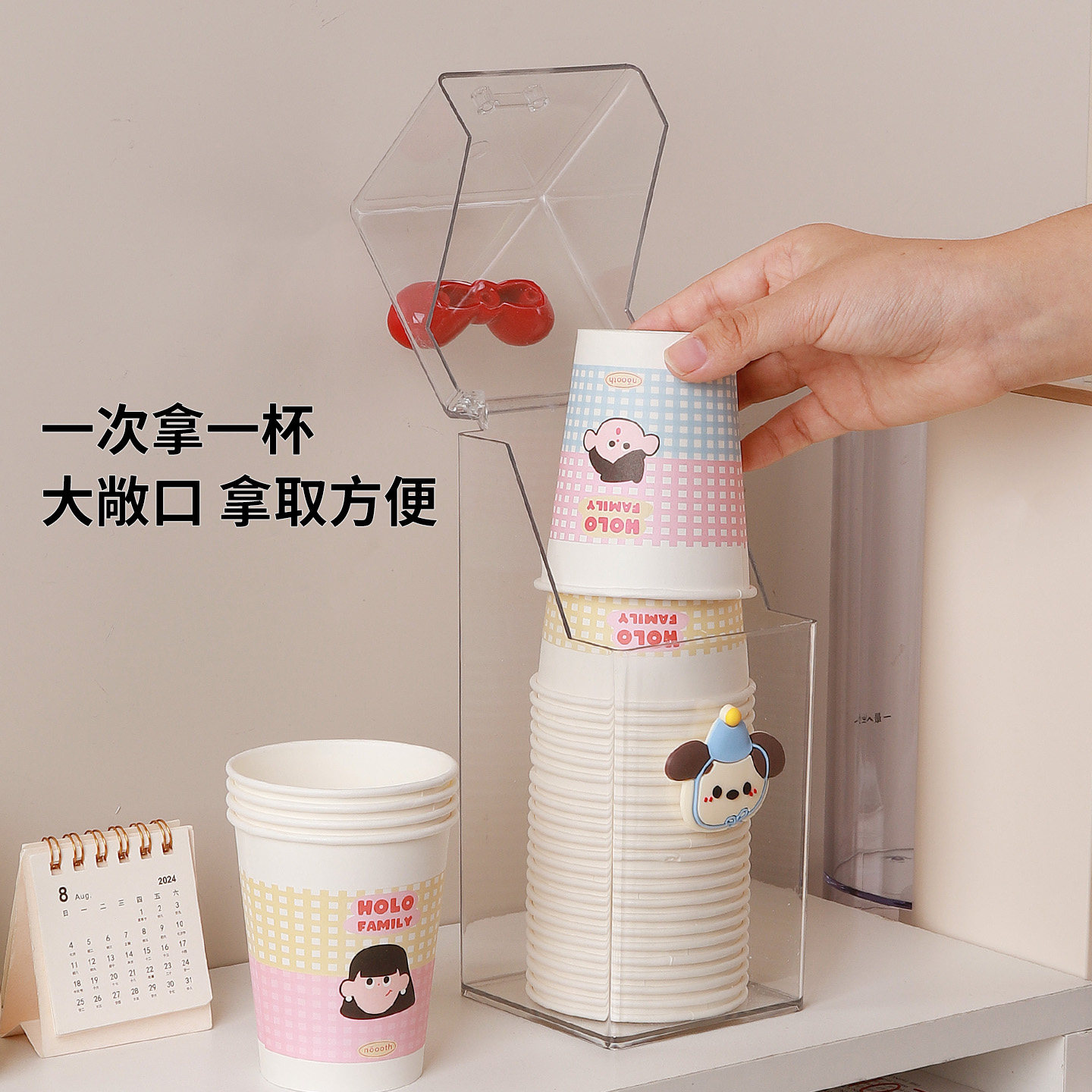 📚 一次性杯子收纳盒桌面防尘置物架放纸杯神器水杯塑料杯专用存放盒