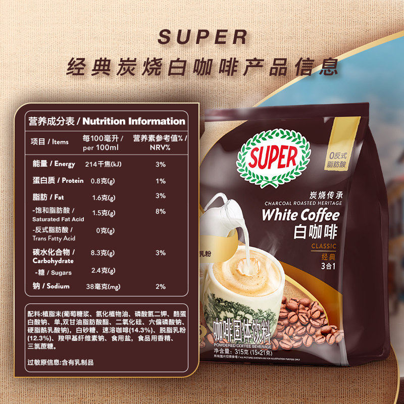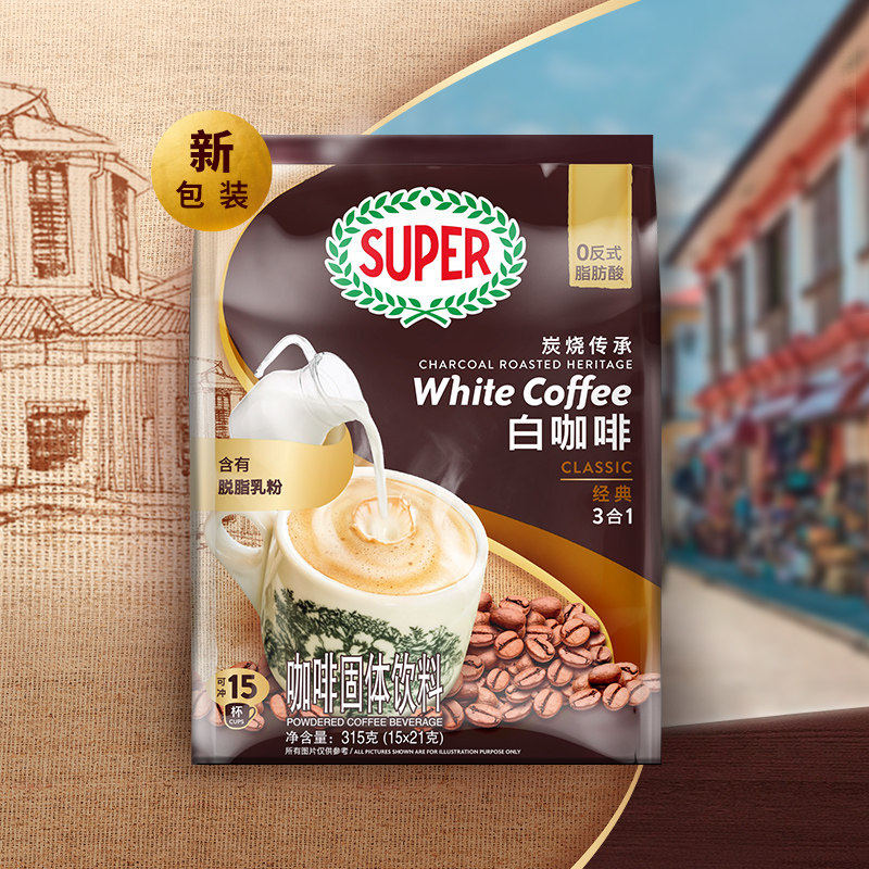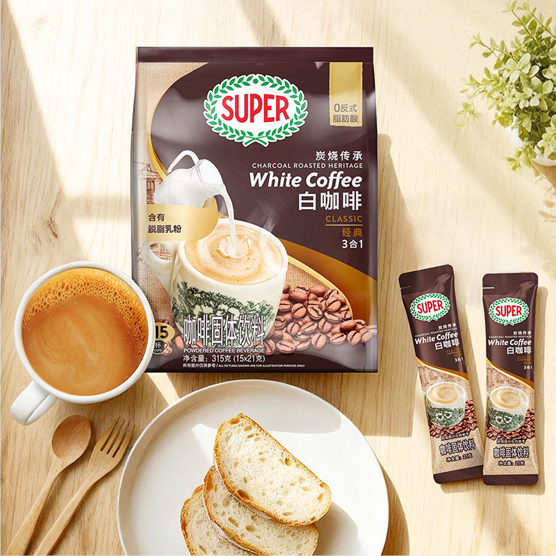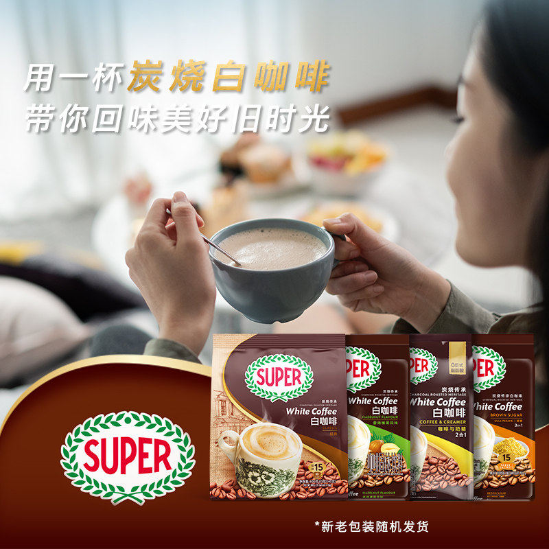 📚 马来西亚原装进口super超级速溶白咖啡粉袋装炭烧原味榛果三合一