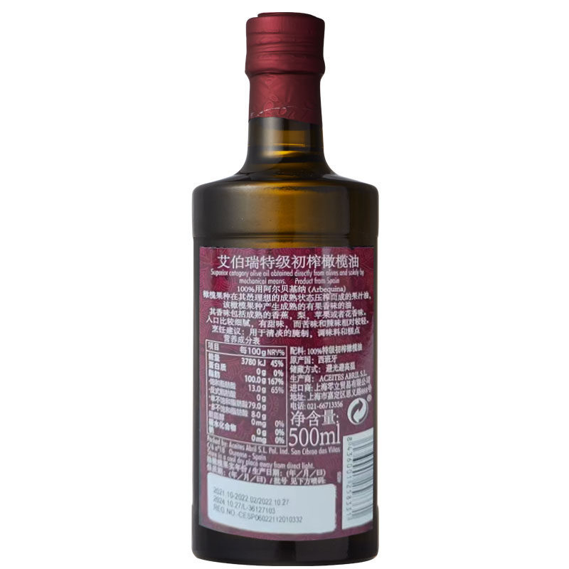 📚 西班牙原瓶进口艾伯瑞特级初榨橄榄油500ml单果种食用油 年货送礼