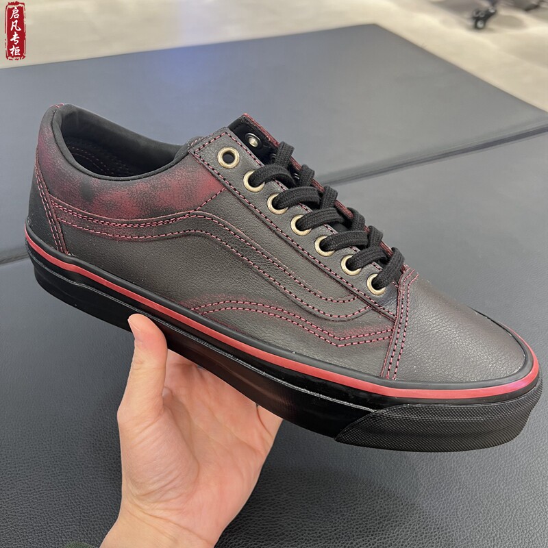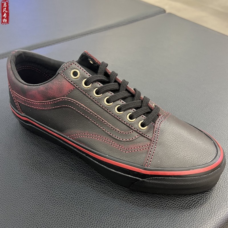📚 VANS范斯Tania Premium LX Old Skool黑红色皮质板鞋VN000EDAKRK