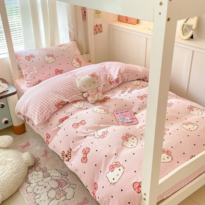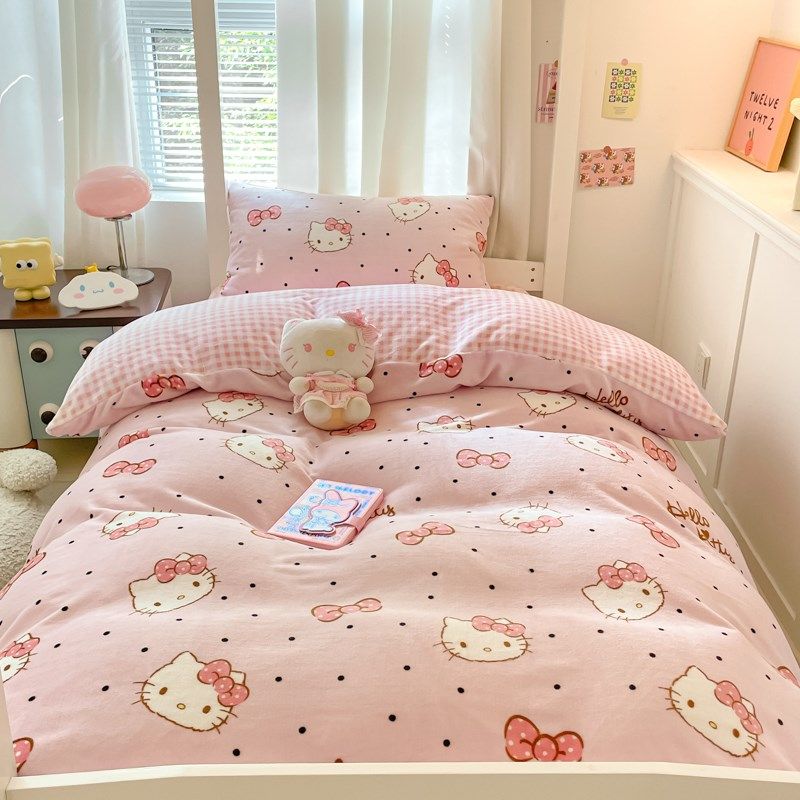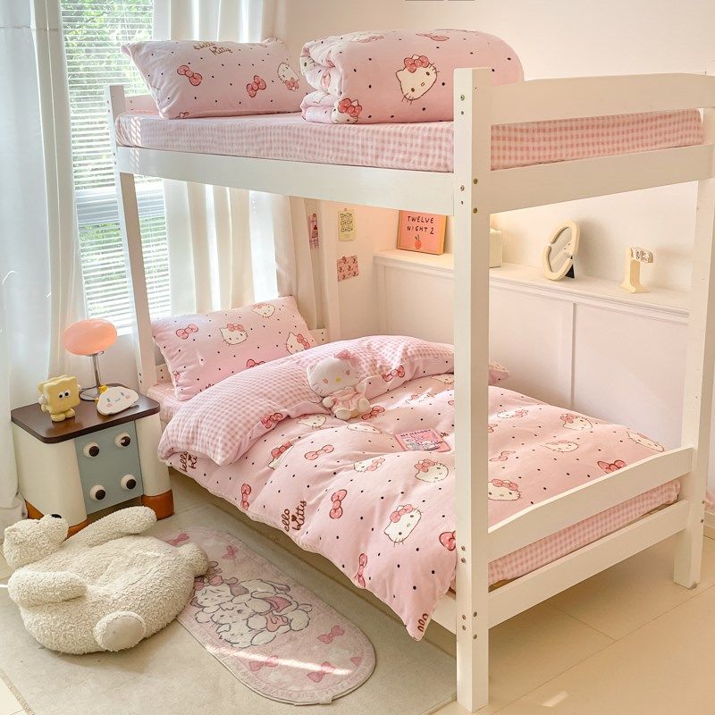 📚 秋冬天牛奶绒135米床儿童床1米35床笠三件套女童床上四件套公主风