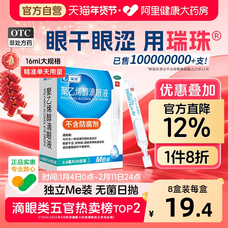 📚 瑞珠聚乙烯醇滴眼液20支干眼症疲劳眼药水缓解人工泪液干涩眼睛